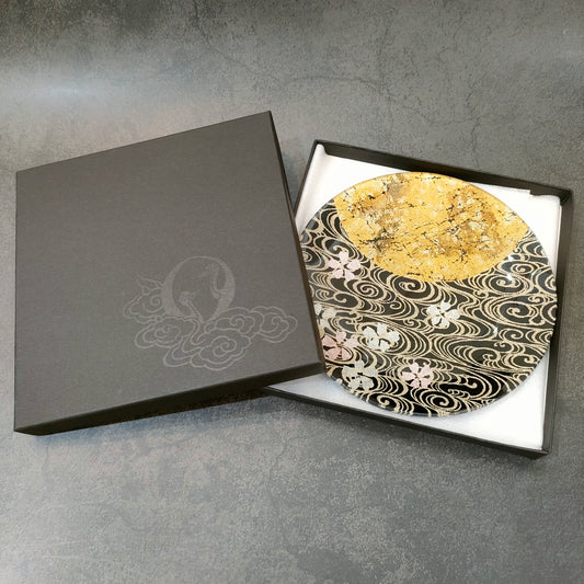 金彩ガラス皿 月に桜・流水(15cm・丸形)