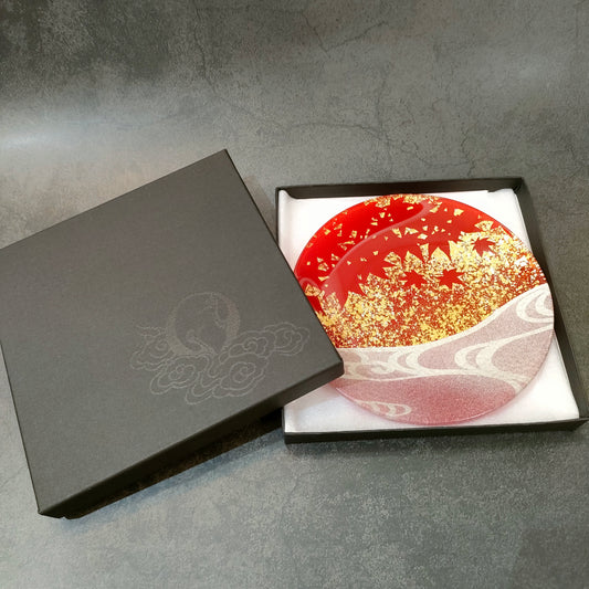 金彩ガラス皿 紅葉に流水(15cm・丸形)