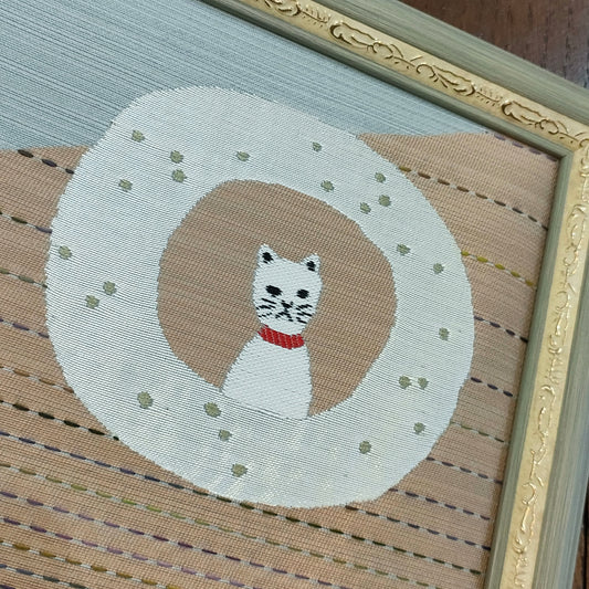 Nishijin Textile Art Frame Cat and Donut (Sugar Donut & White Cat)