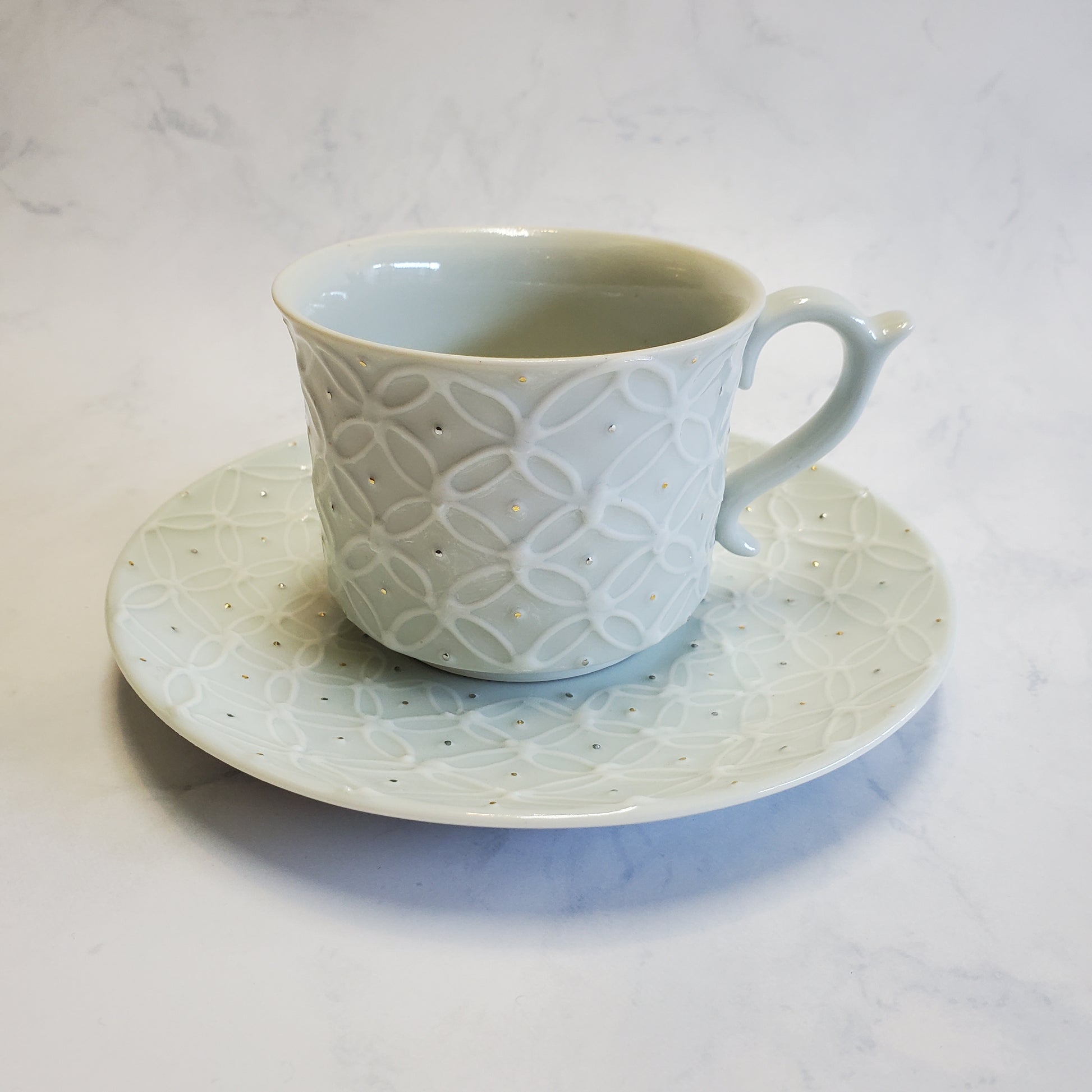 Cloisonne Platinum x Gold Dot Coffee Cup & Saucer