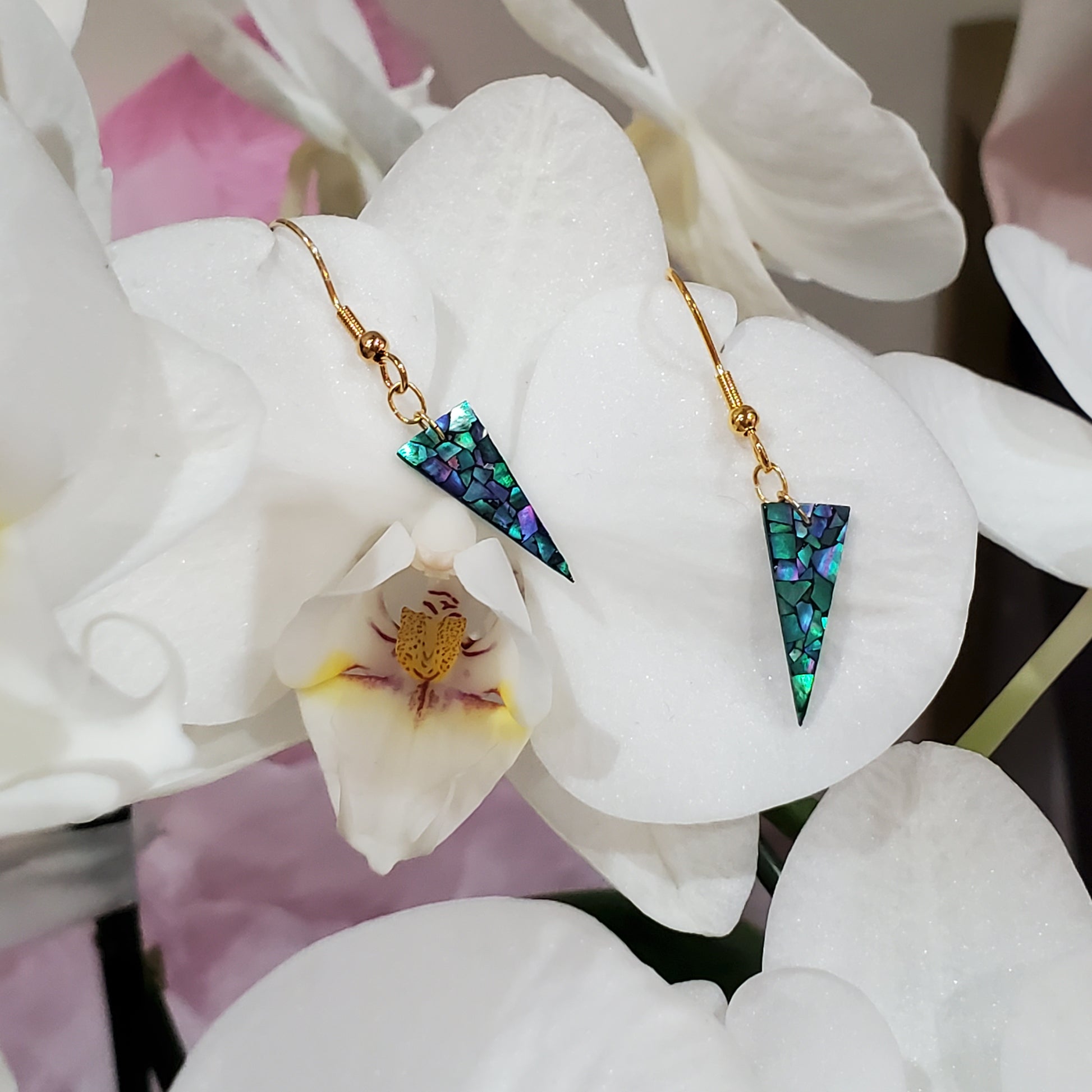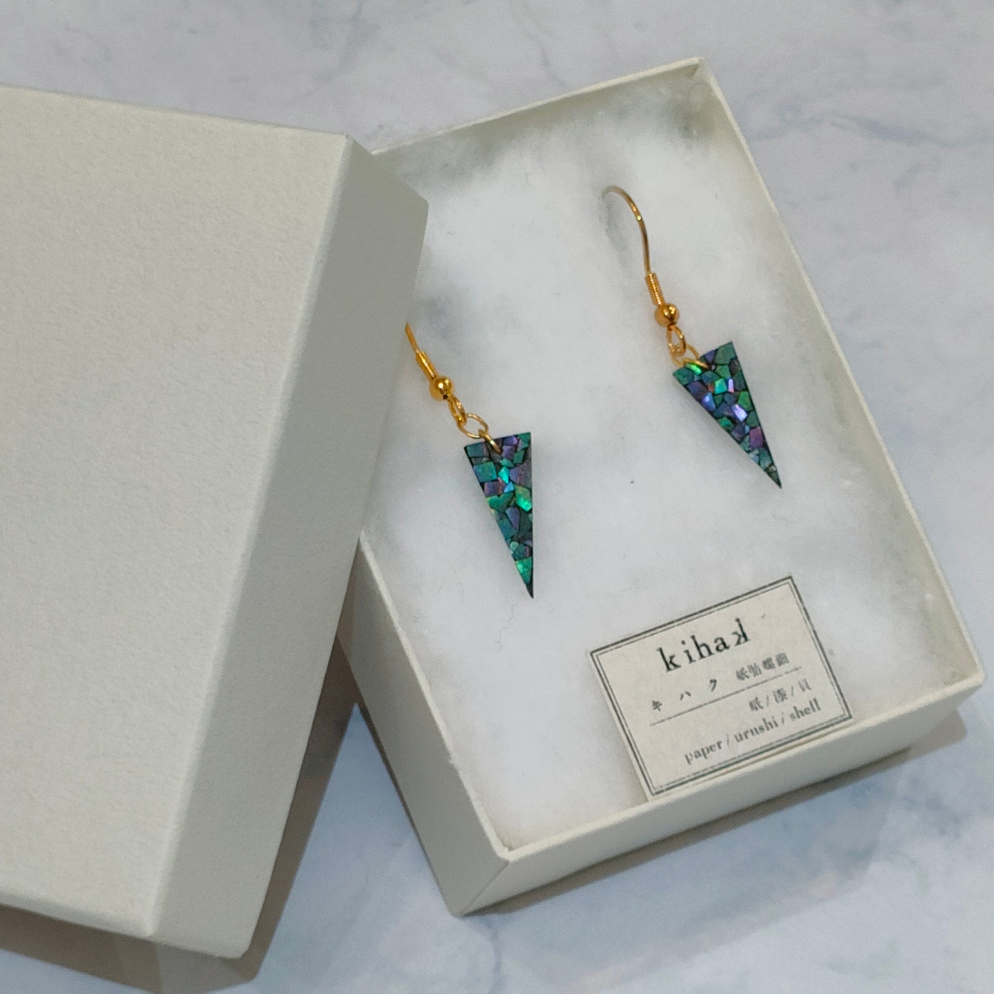 Paper mother-of-pearl kihaku "inverted triangle" earrings