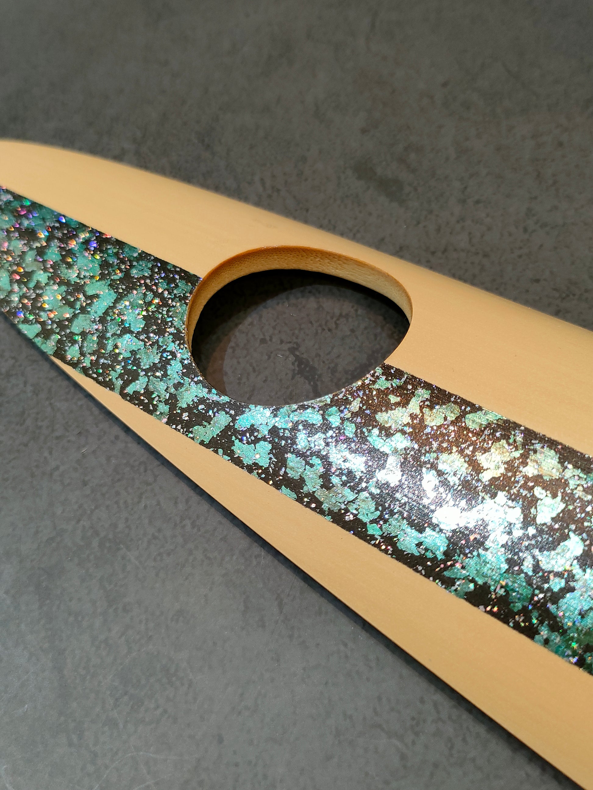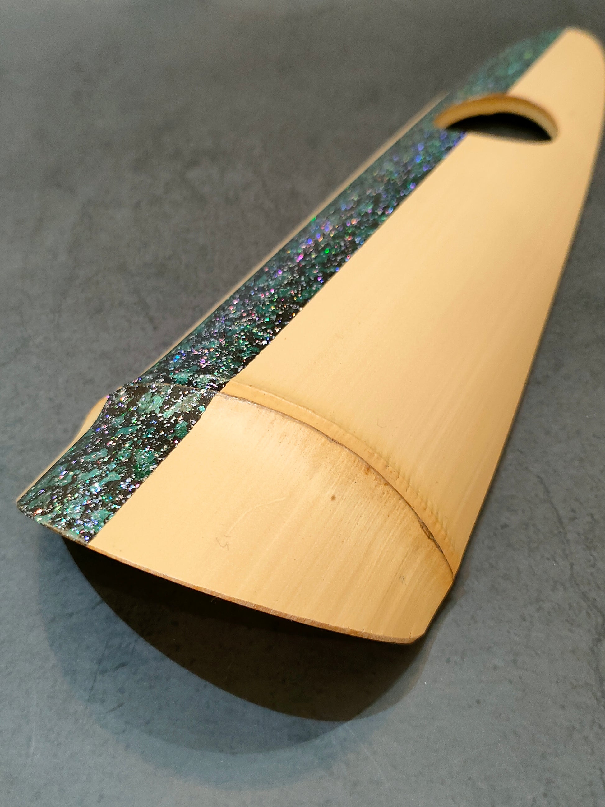 - 京銘竹「白竹」に、京友禅の金彩加工職人が砂子(すなご)という技法で金彩加工を施しています。