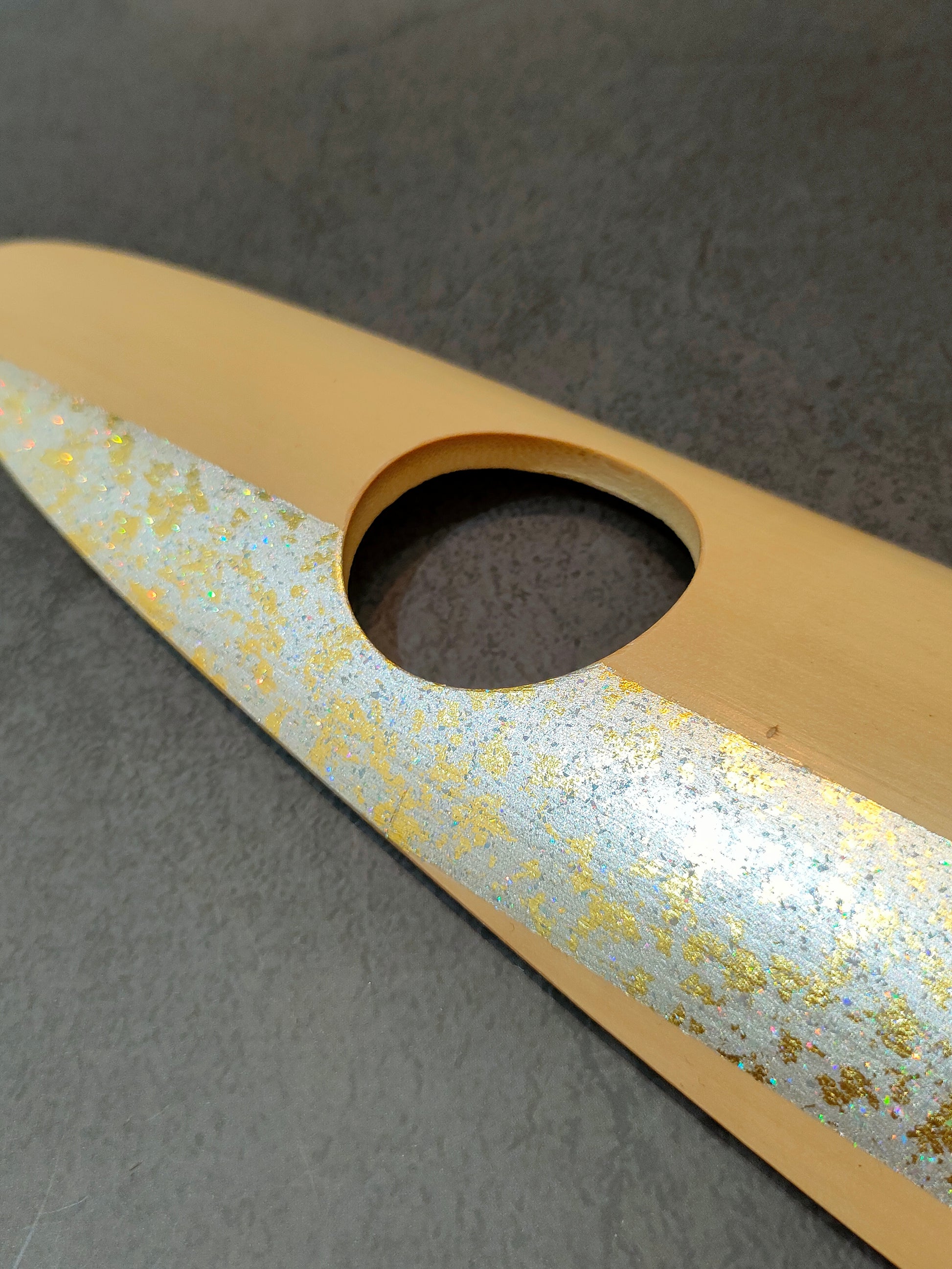 - 箔を振り落とす力加減、量など繊細な技により、ひとつひとつ仕上がりの表情が変わります。
