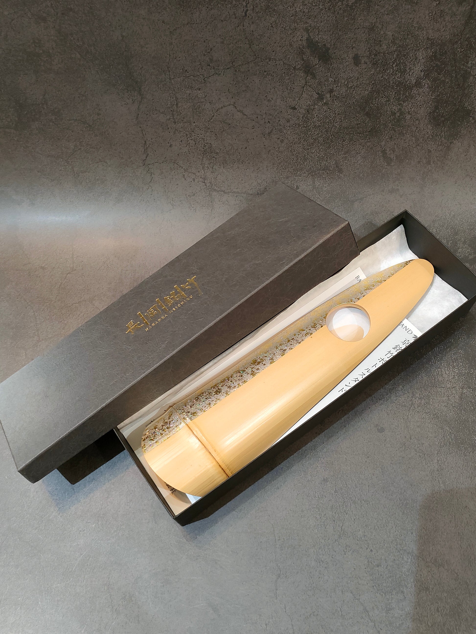 - 専用の細長い黒い紙箱有(ロゴマーク入り)※箱の中で白い和紙でお包みします