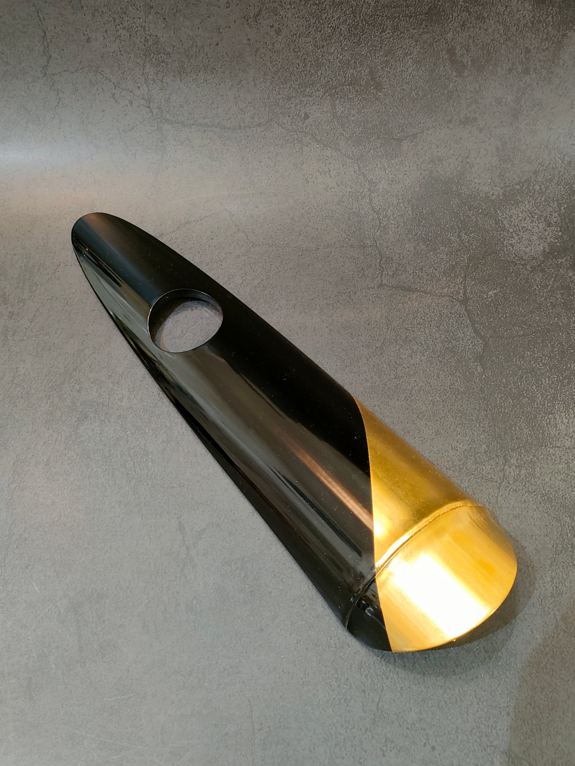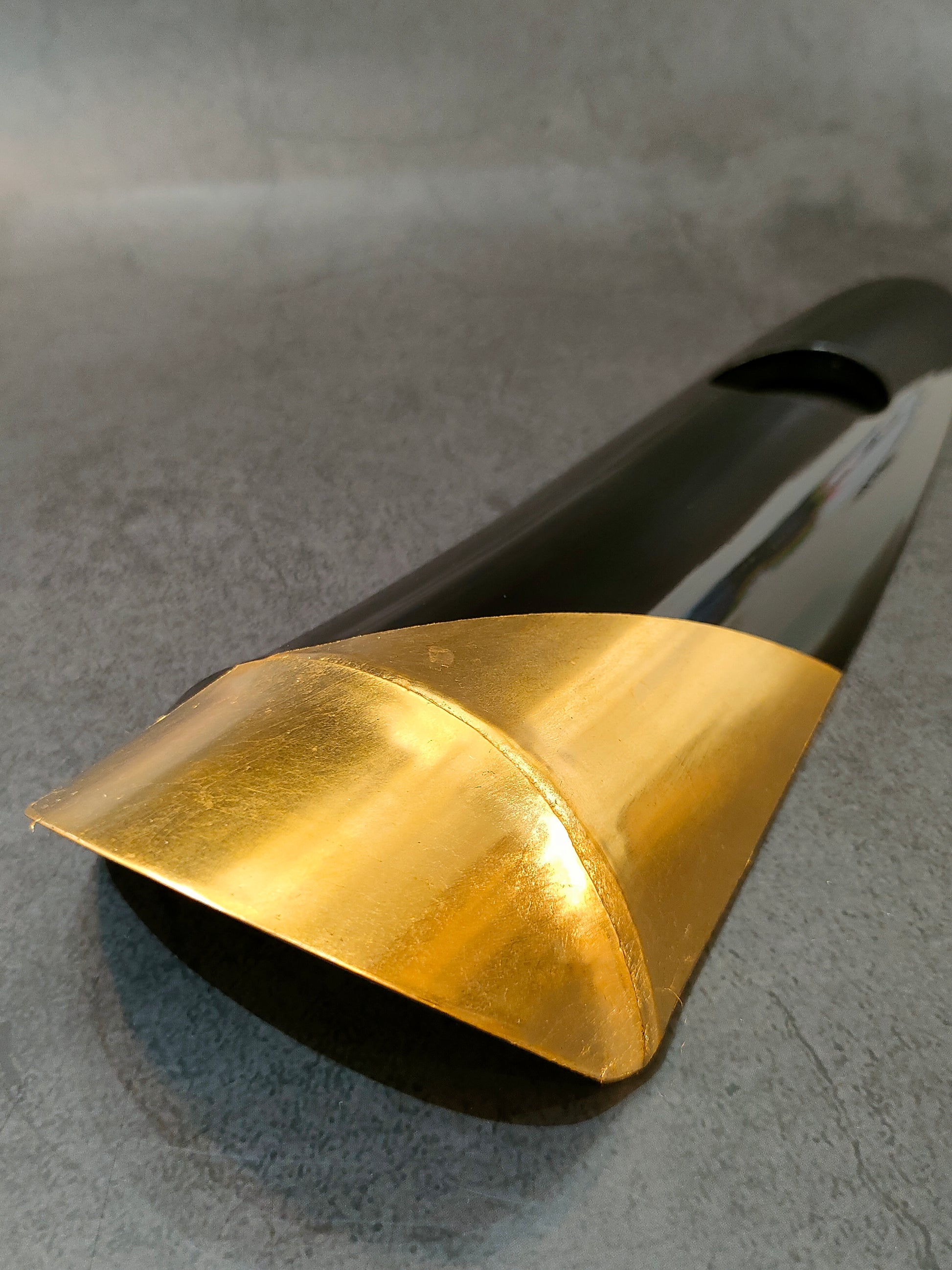 - その漆と金の相性はよく、加飾性や芸術性を高めるばかりか、耐久性までも高める効果があり、かねてより重要文化財などを現代に伝える役割を担っていたと言われています。その様な漆と金を掛け合せ、竹はそれらを引き立てる役割にしました。