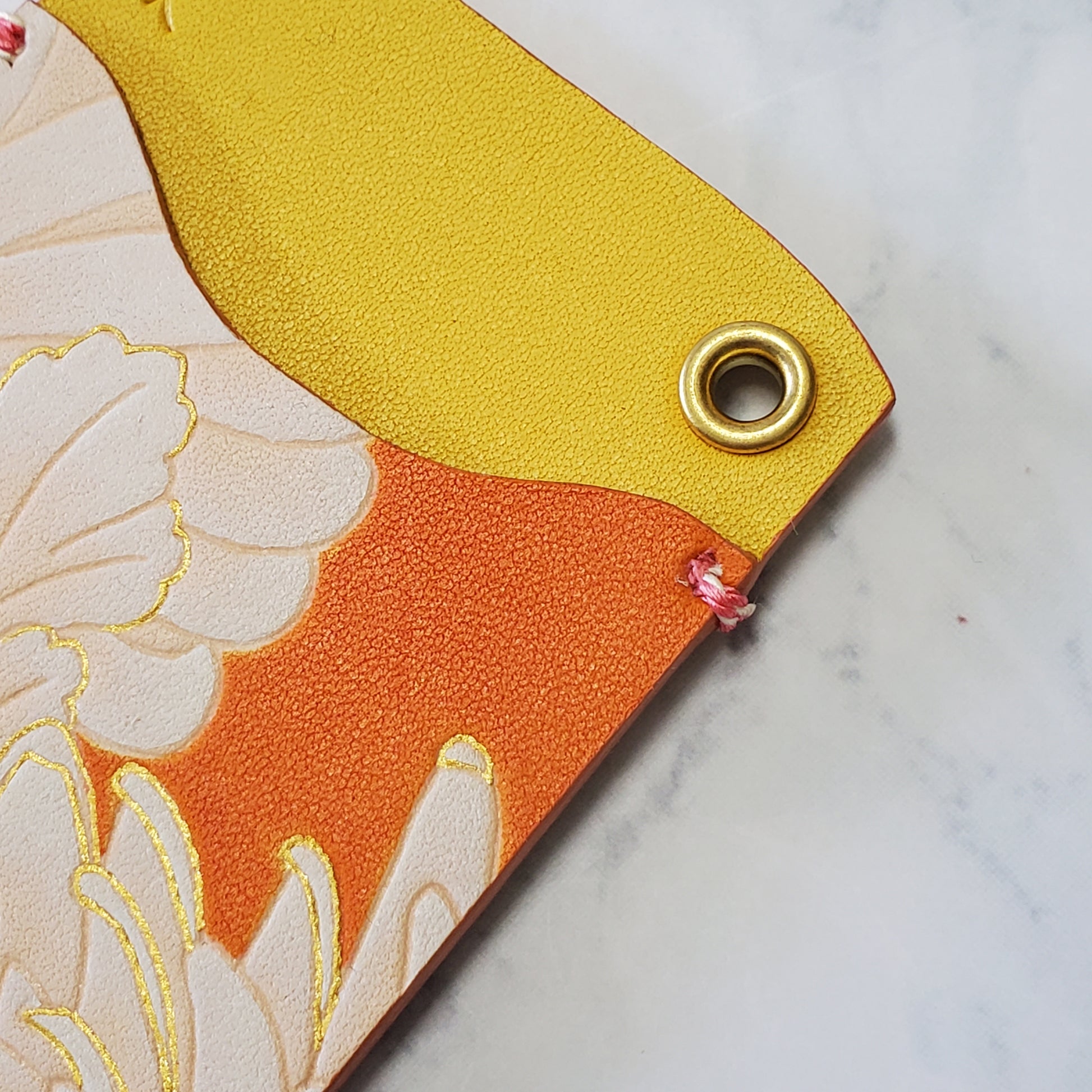 - 和柄小物となると、一般的に着物の端切れを使ったりしますが、布ではなく革なので、破れたり、ほつれる心配がありません。