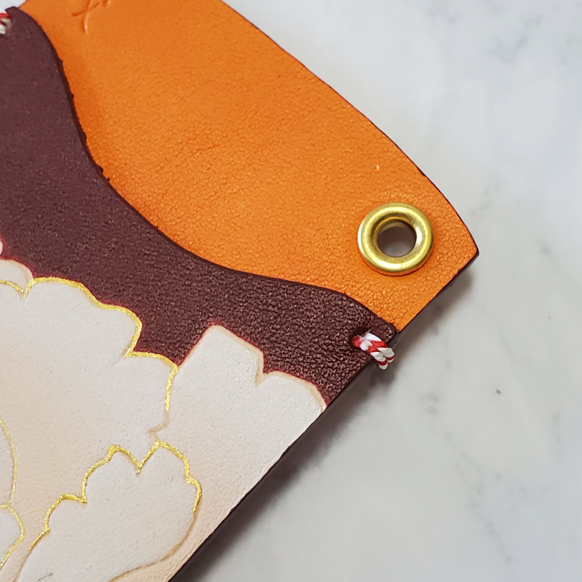 - 和柄小物となると、一般的に着物の端切れを使ったりしますが、布ではなく革なので、破れたり、ほつれる心配がありません。