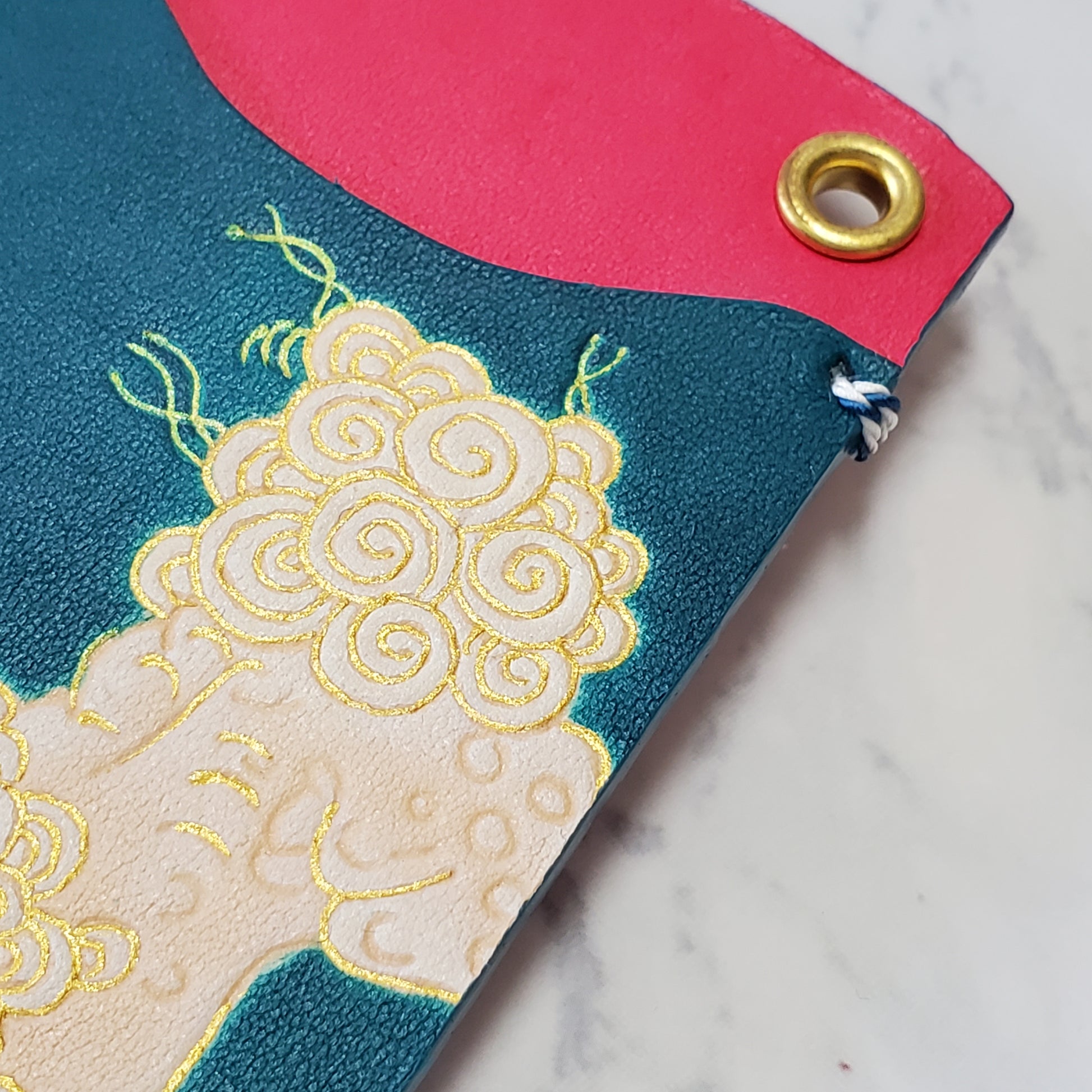 - 和柄小物となると、一般的に着物の端切れを使ったりしますが、布ではなく革なので、破れたり、ほつれる心配がありません。