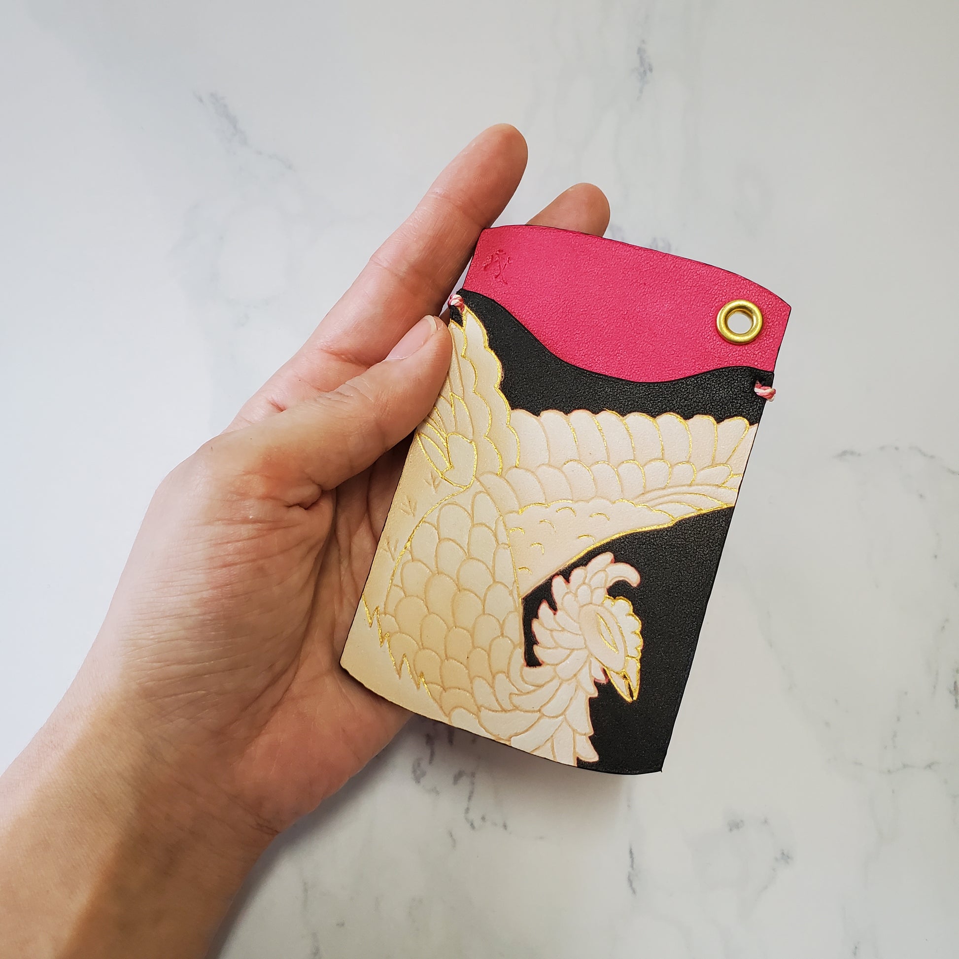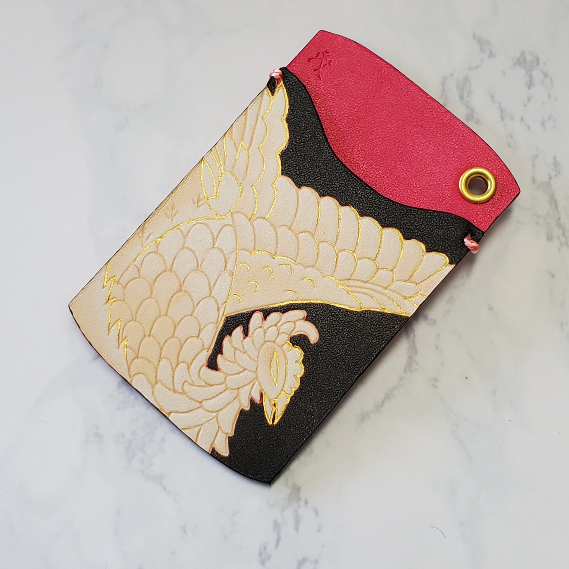 - 手描友禅は着物(生地)を染める技術として江戸時代(約18世紀)から現代まで受け継がれてきましたが、その技術を使って革を染めたパスケースです。
