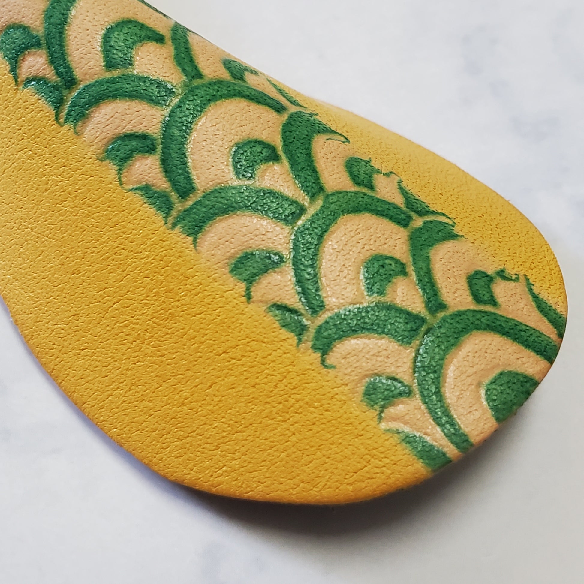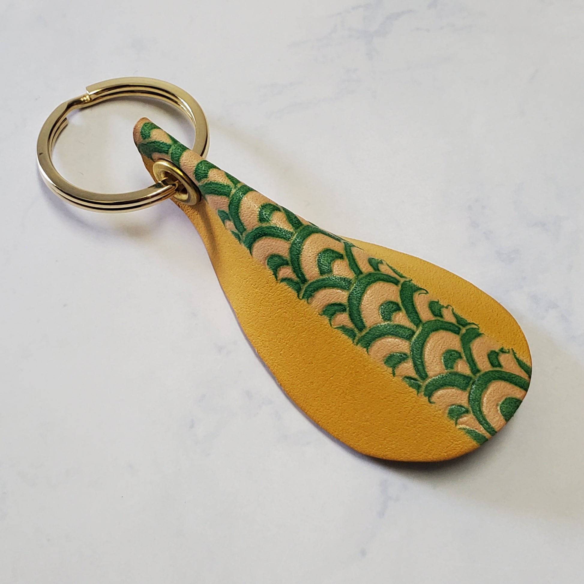 - 「手描友禅」着物を染めるその技法を用いて革を染めたキーリングです。