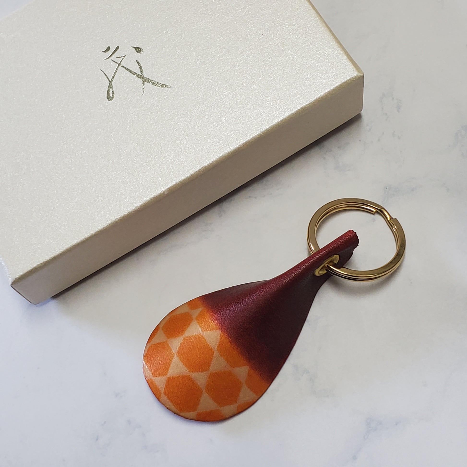 - 「手描友禅」着物を染めるその技法を用いて革を染めたキーリングです。