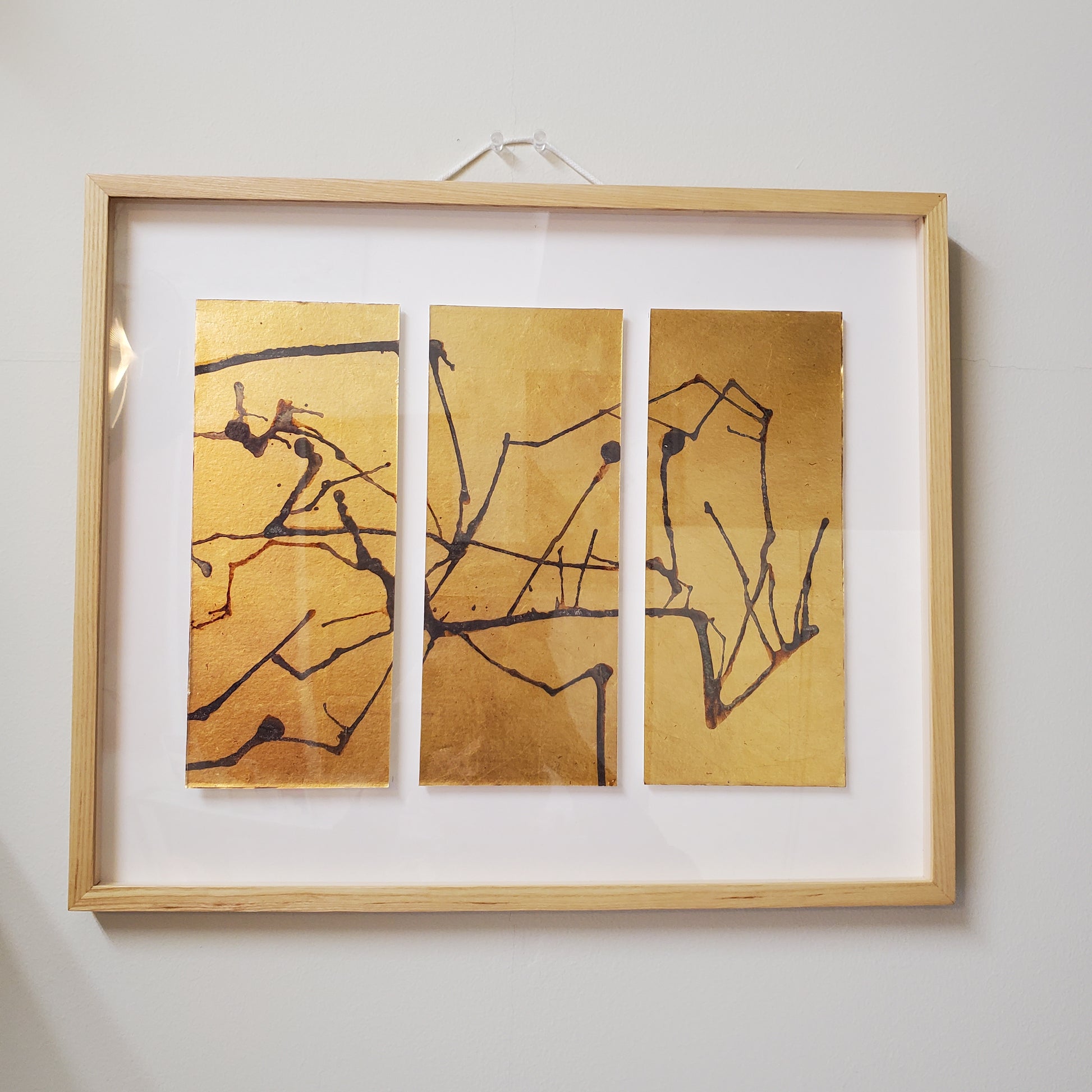 中金箔という素材が持つ特徴のコントラストを額装した作品になります。