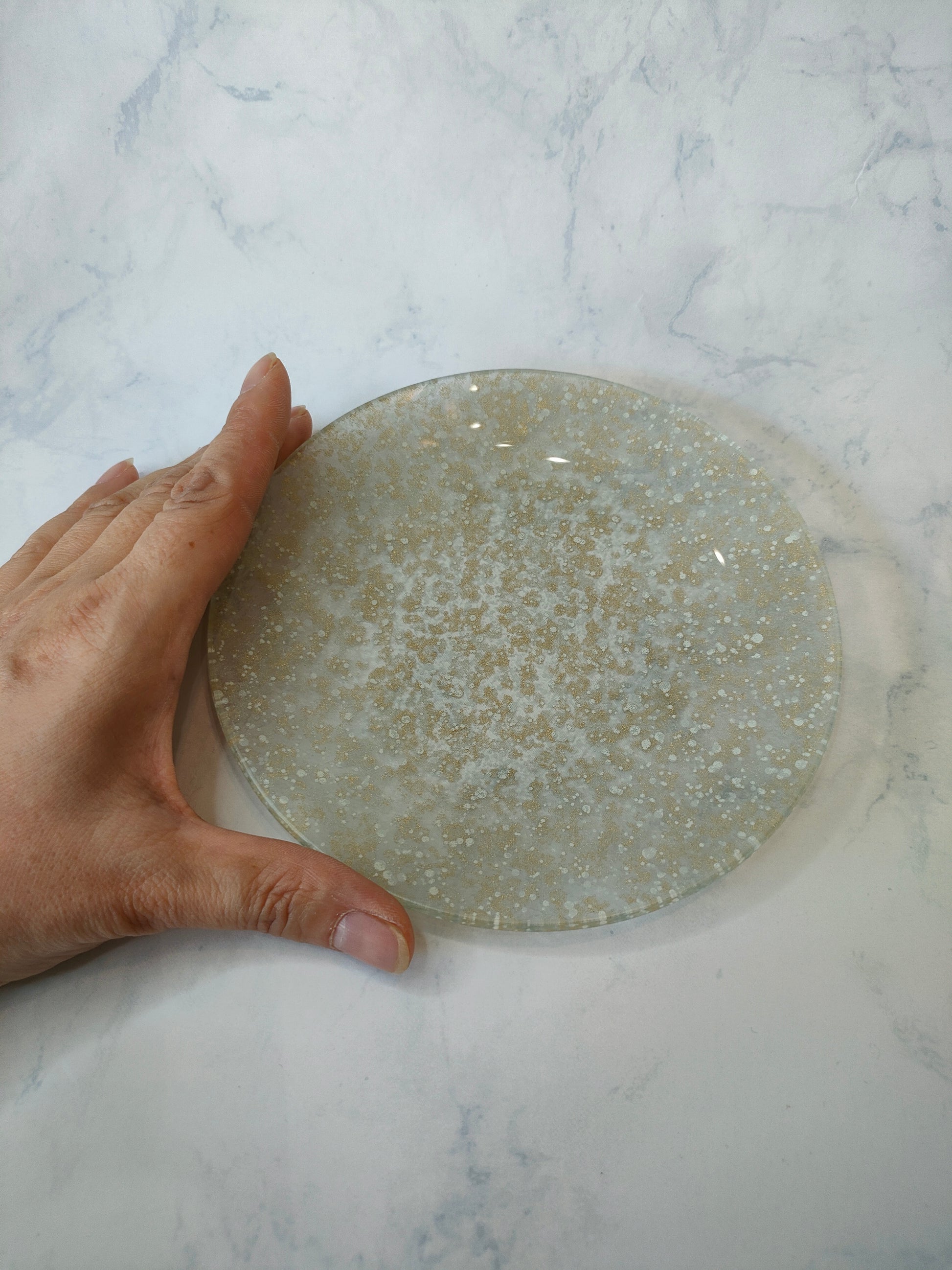 - その技術を活かし、ガラス加工業者とコラボして制作したガラス皿です。