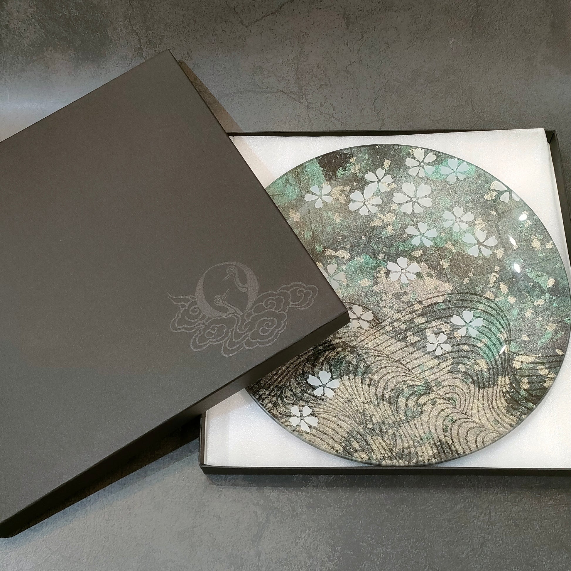 - その技術を生かしガラス加工業者とコラボして制作しました飾り皿になります。