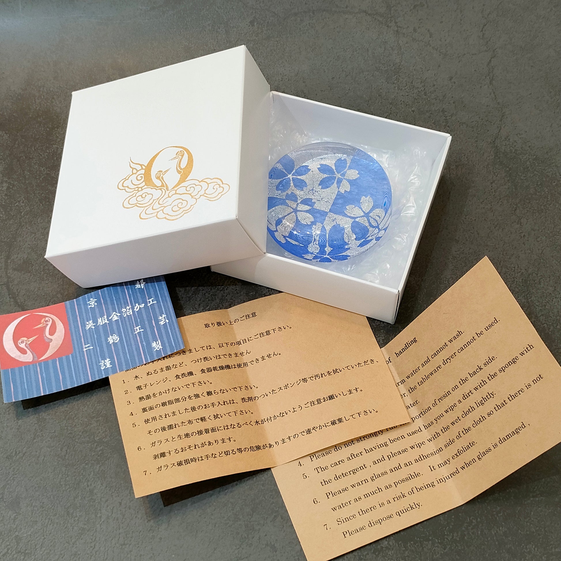 金彩ガラス ペーパーウェイト 桜 ブルー(7cm・丸形)