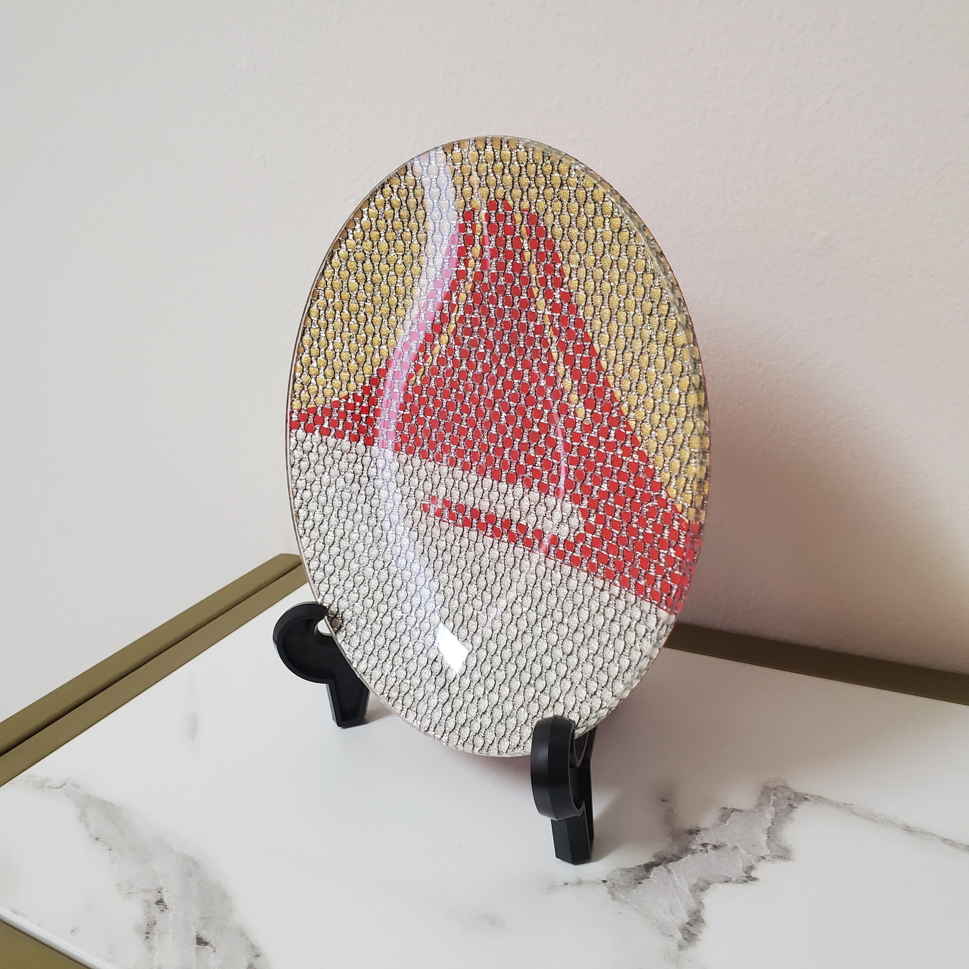 金彩ガラス皿 赤富士(大15cm・丸形)