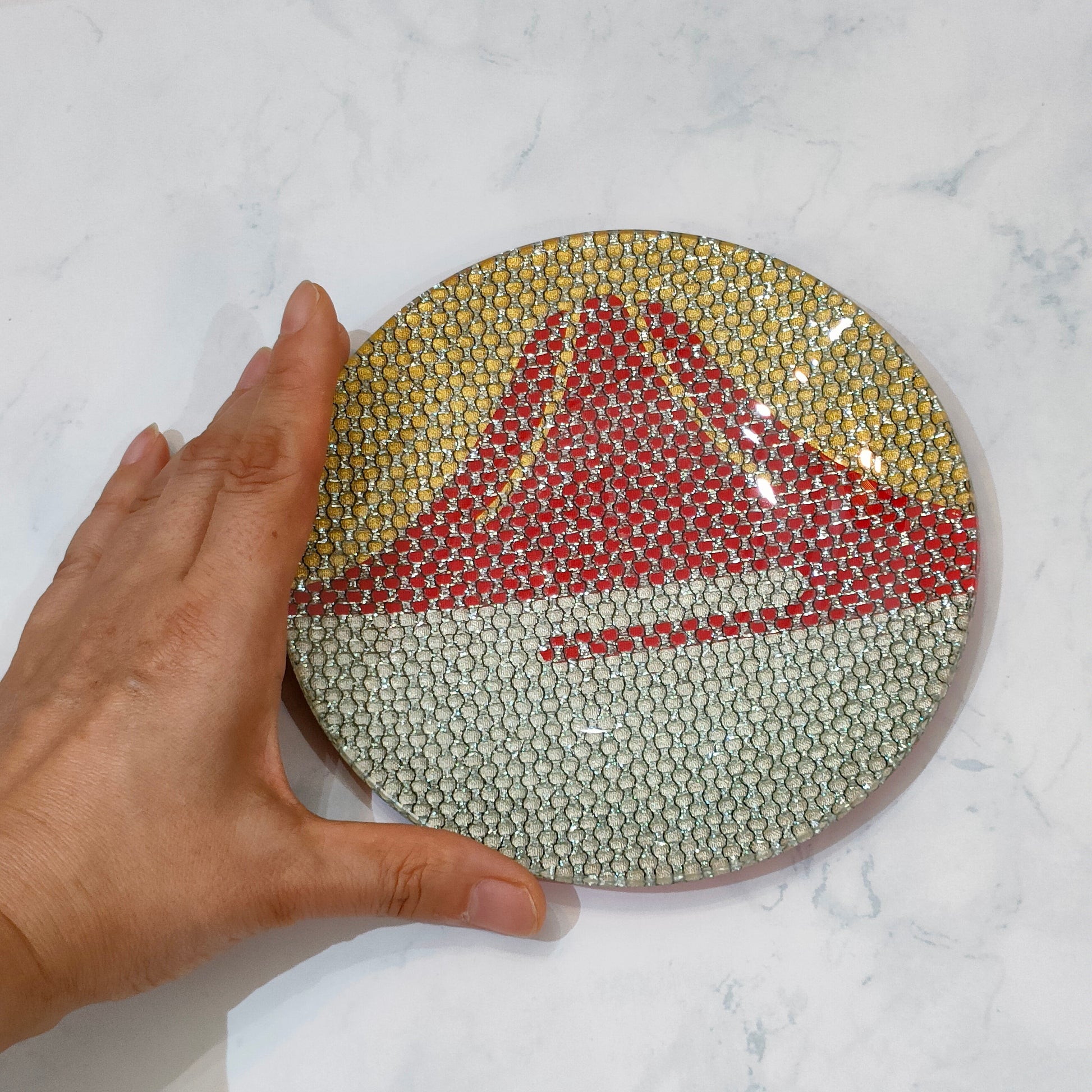 - その技術を生かしガラス加工業者とコラボして制作しましたガラス製の飾り皿になります。