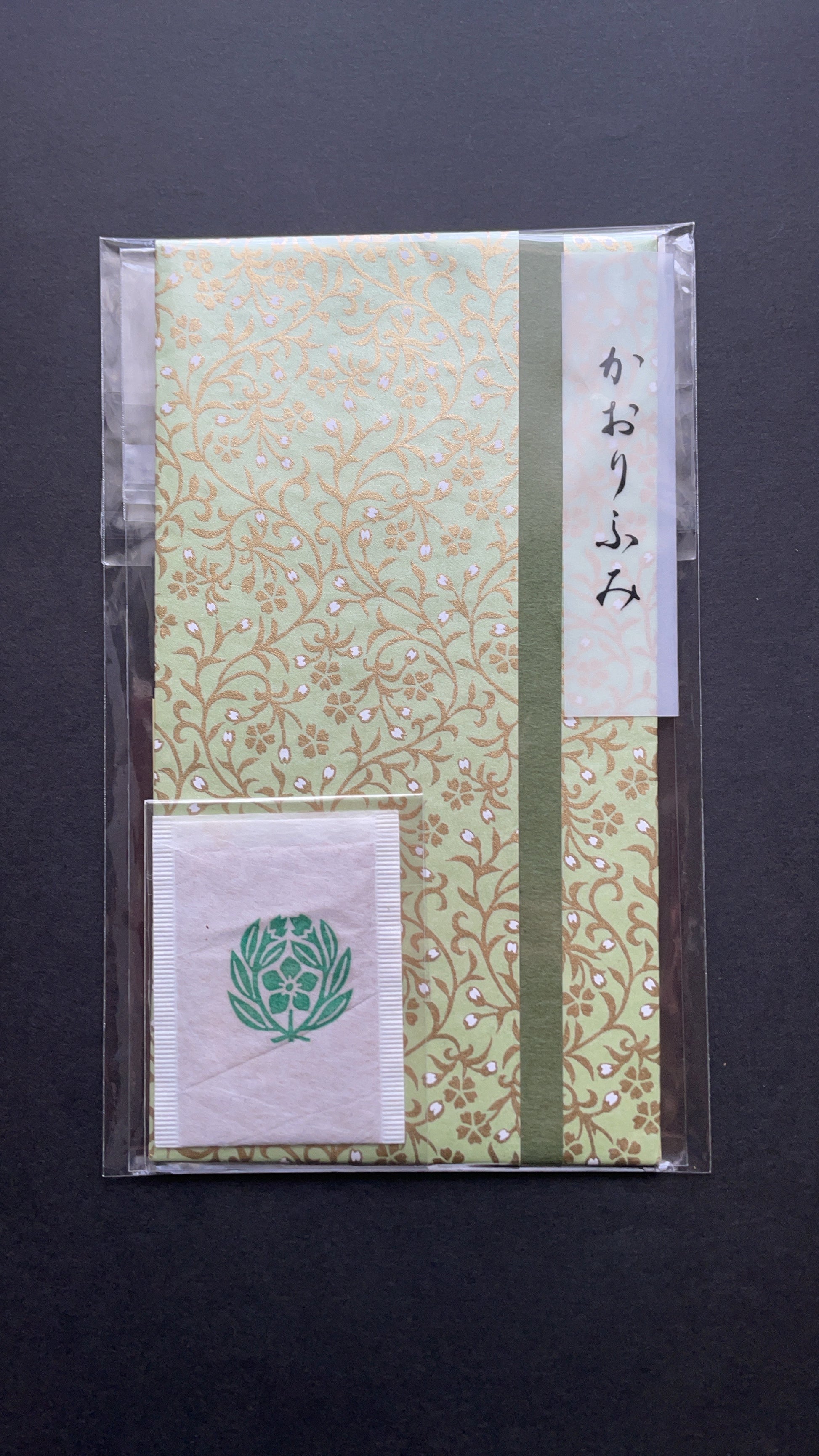 - 京都八幡の小さな工房で、1枚ずつ丁寧に手染めされた美しい友禅和紙を使ったお手紙つつみに、香司である香りすと®が調合したお香袋が付いています。