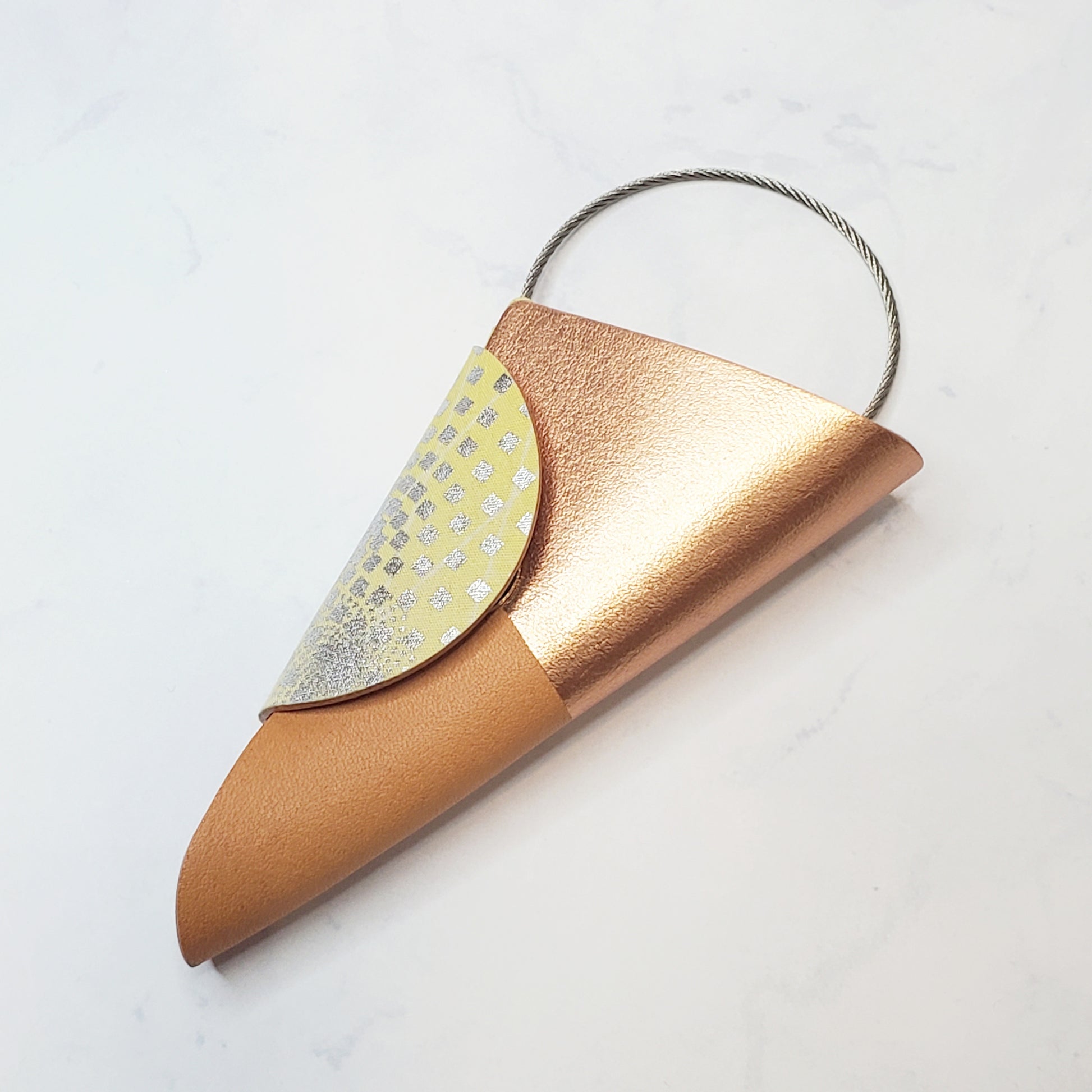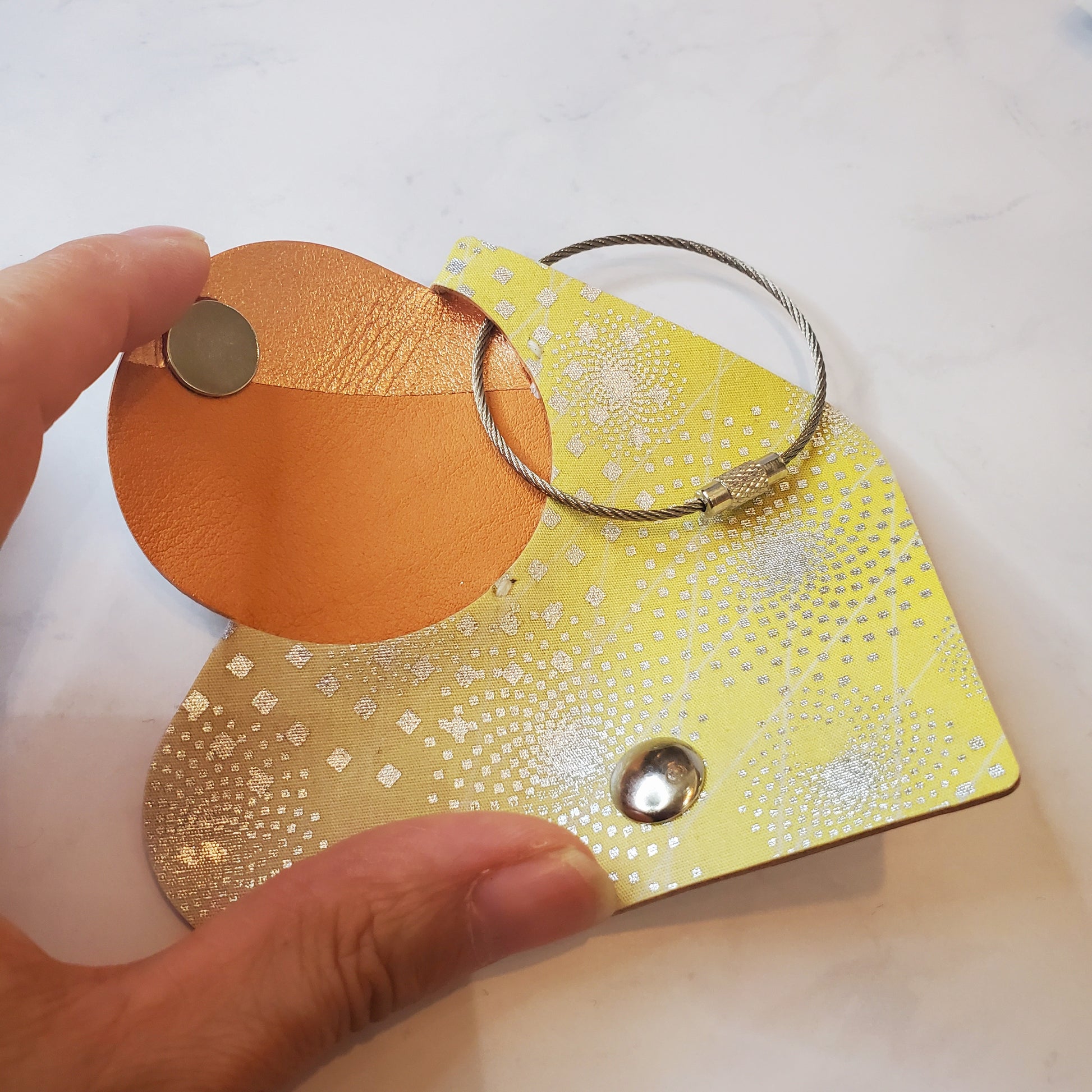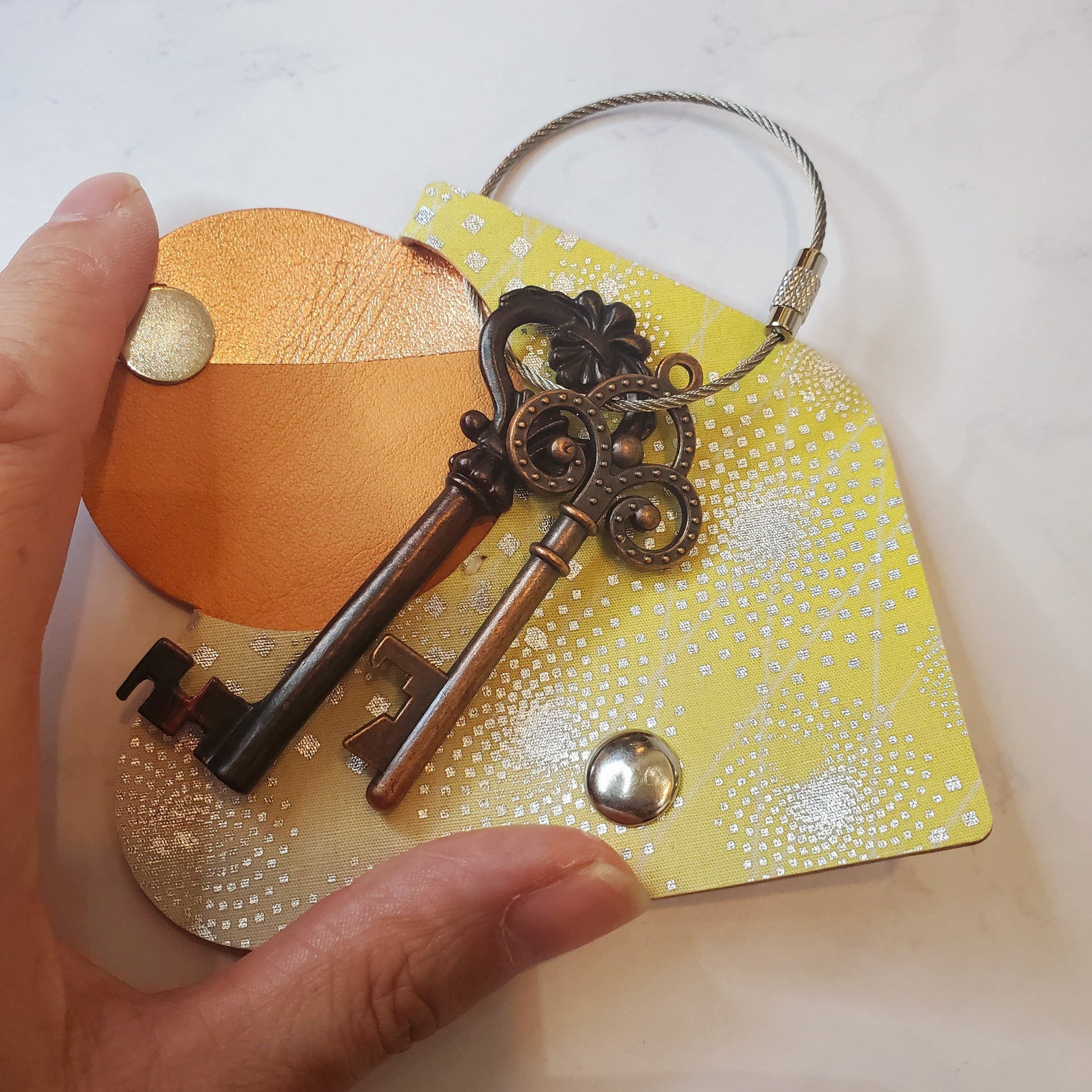 ヌメ革と生地を貼り合わせたキーケースです。