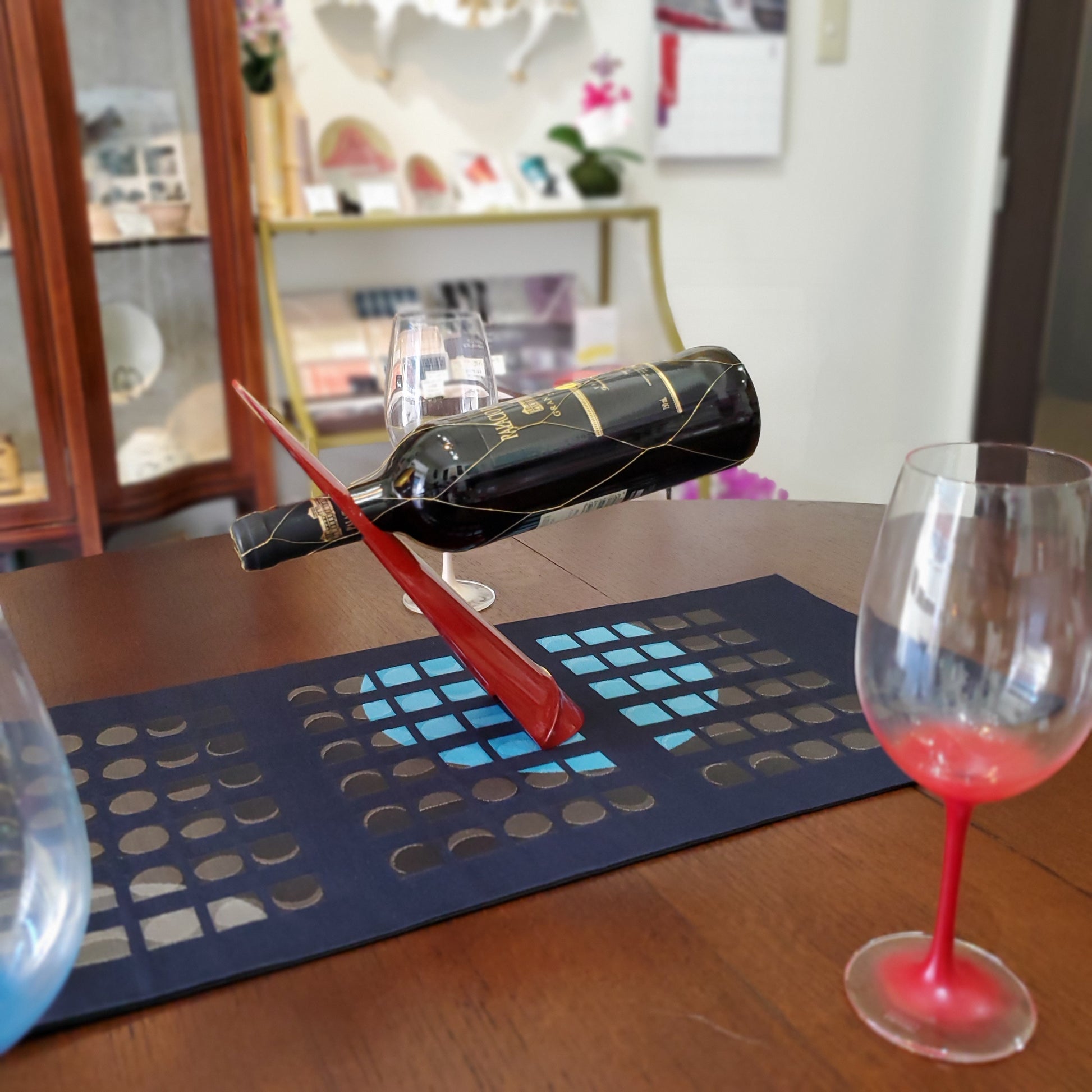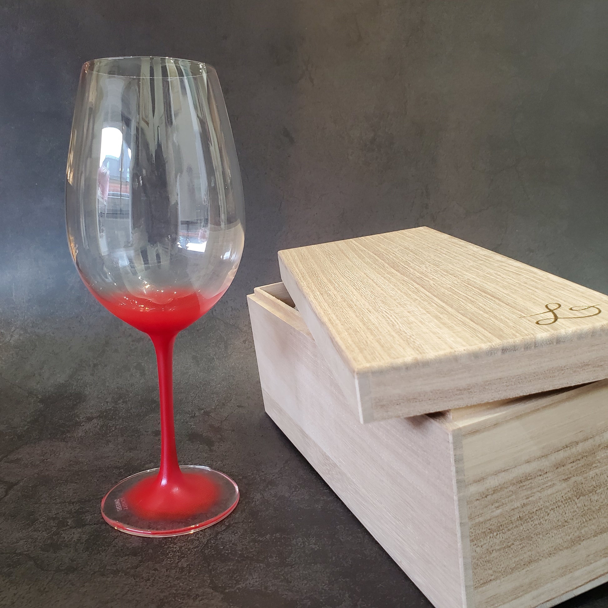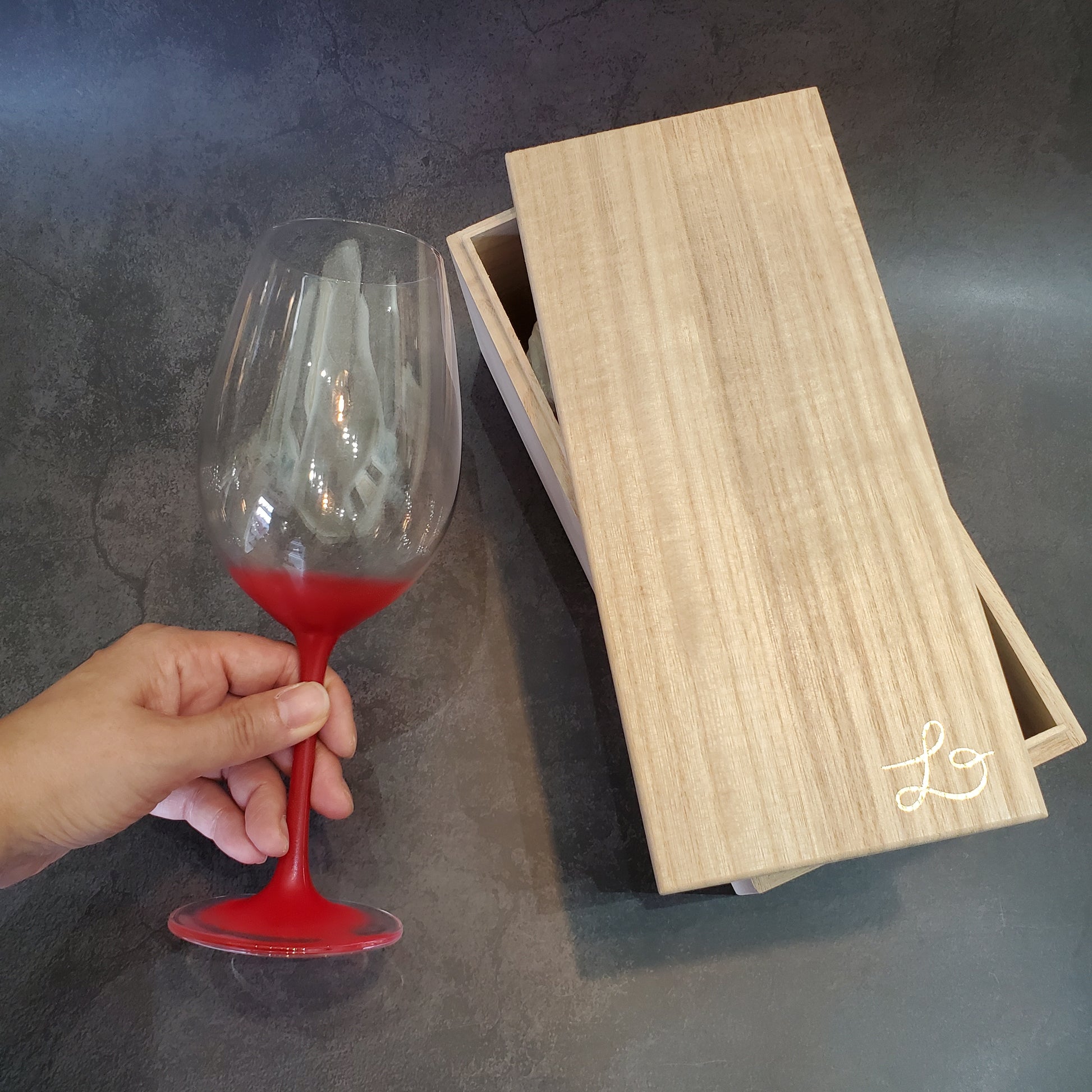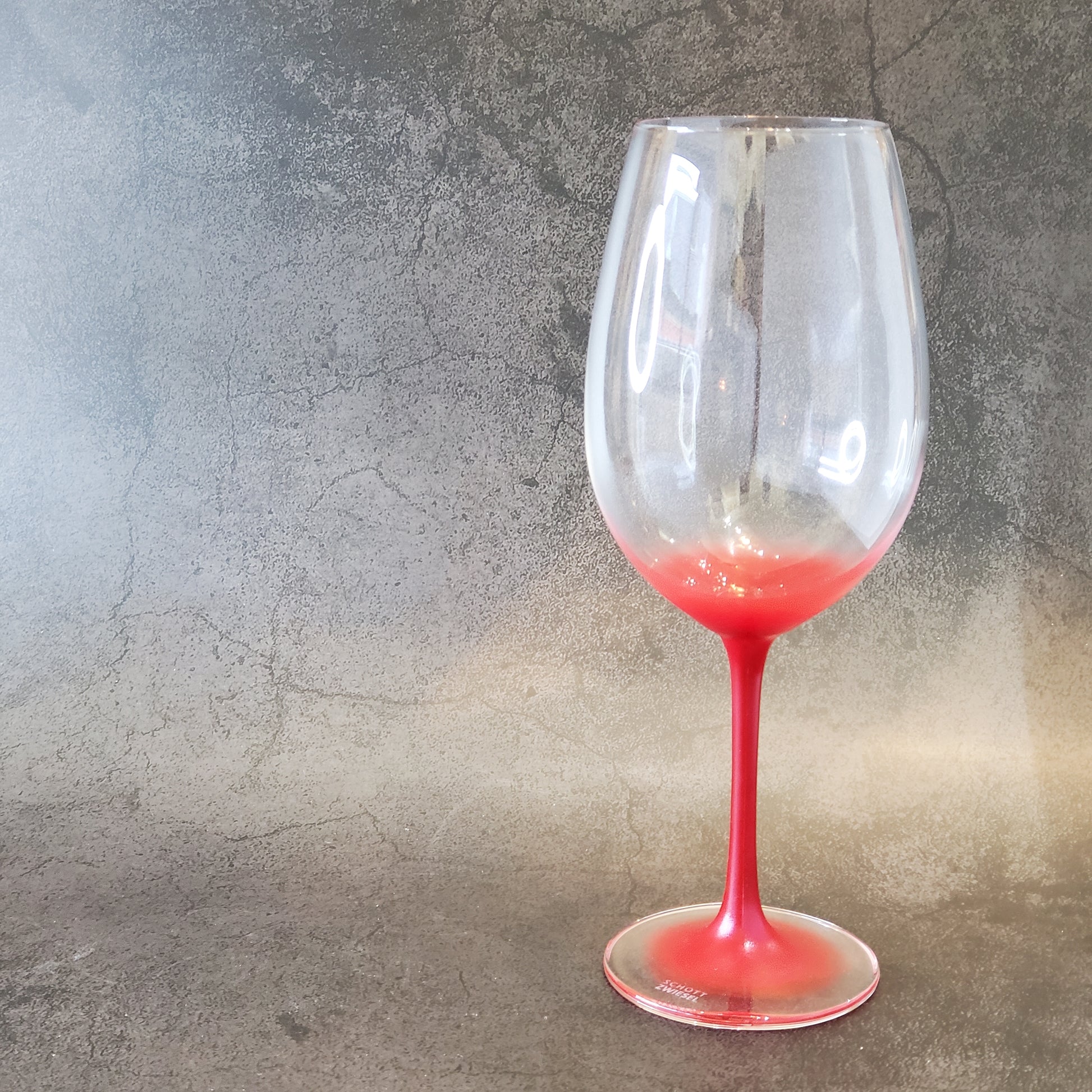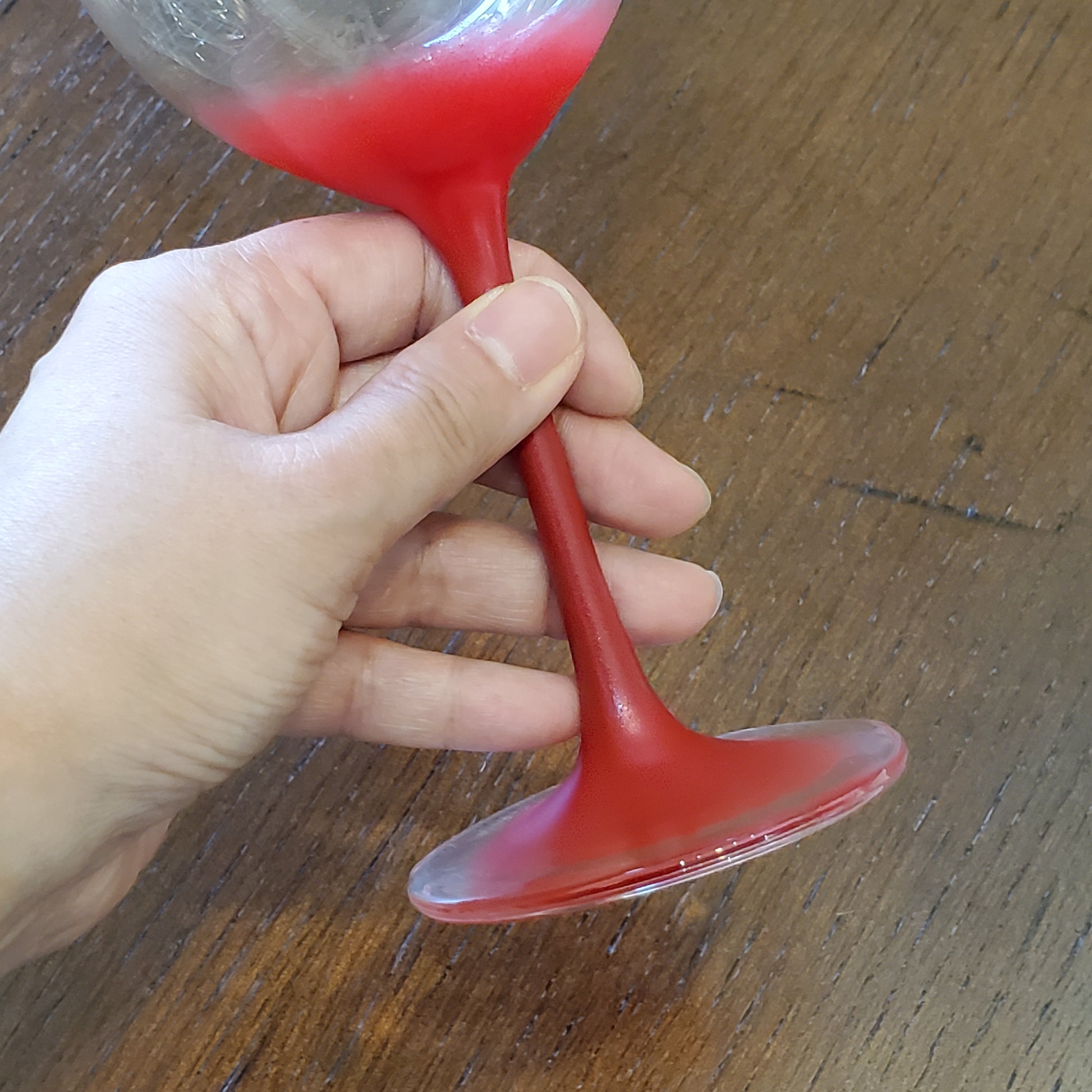 ドイツ製のグラスにワインの色を引き立てるように、ステム部分を中心に色漆をぼかし塗りにしています。