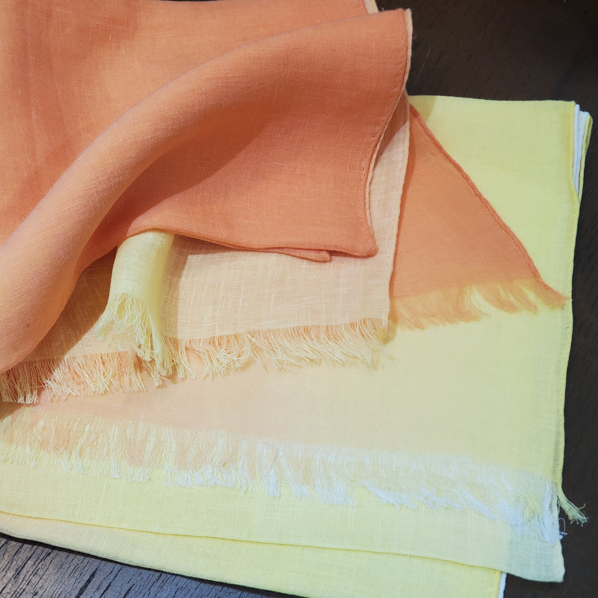 リネンの生地に刷毛を使って朝焼け夕焼けの空をイメージした色でグラデーションに染めたストール。