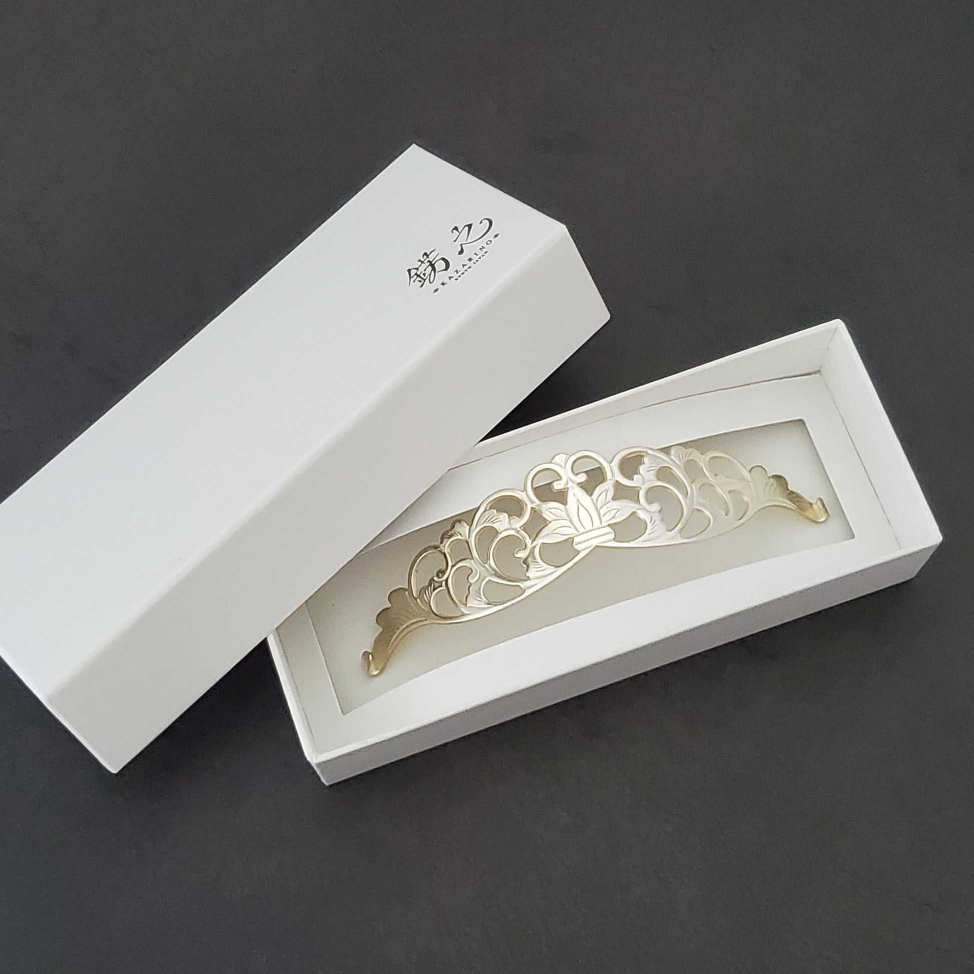 - 日本の伝統的な錺金具のデザインを現代風にアレンジしており、おしゃれなヘアアクセサリーとして存在感を発揮します。