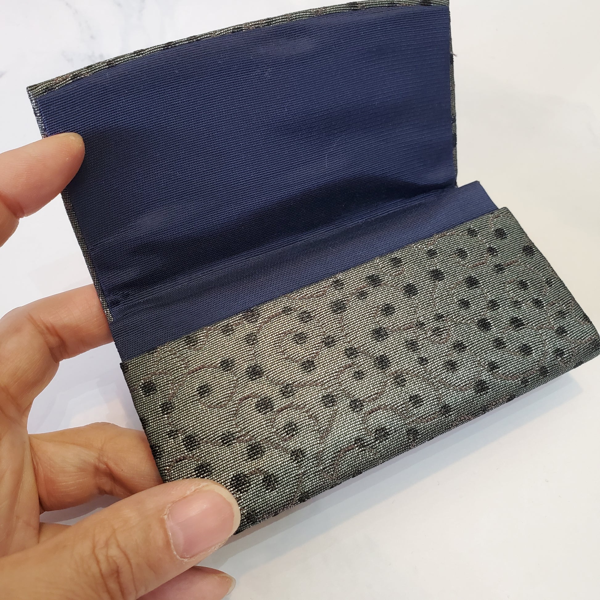 西陣織 カードケース シルバー×グレー