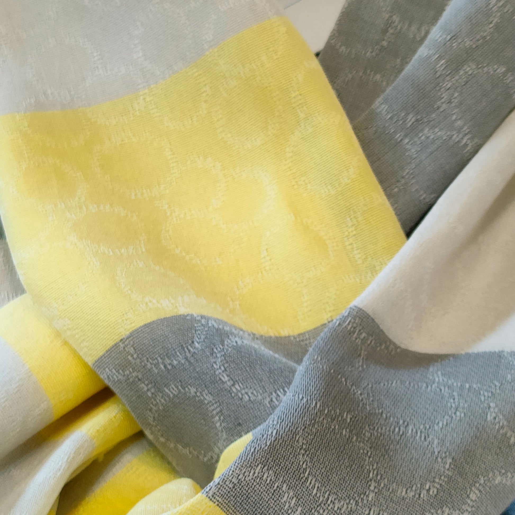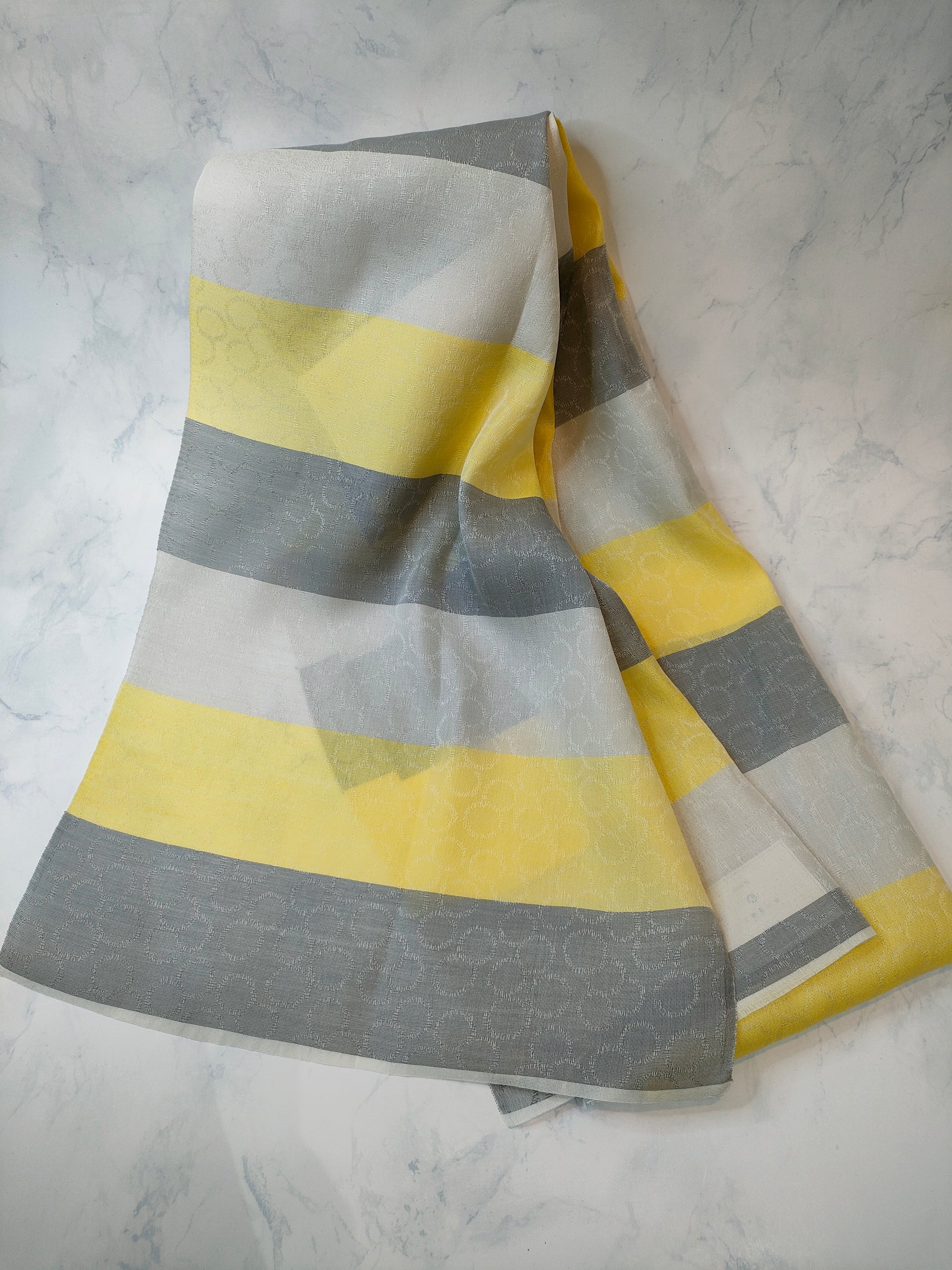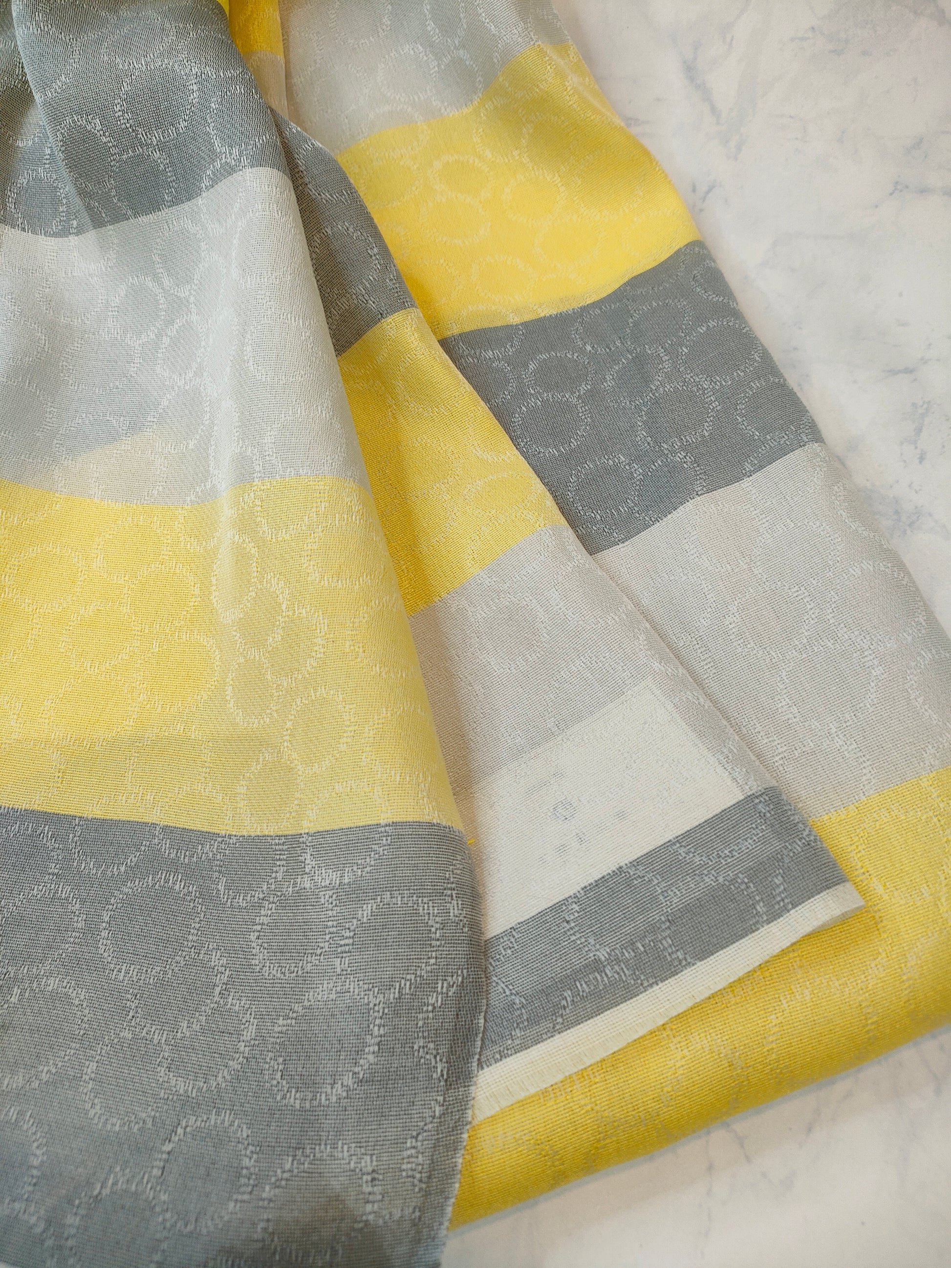 3色の緯糸(よこいと)を織り分けてストライプに。