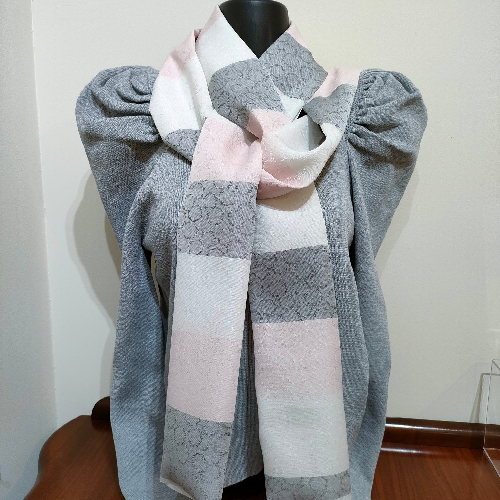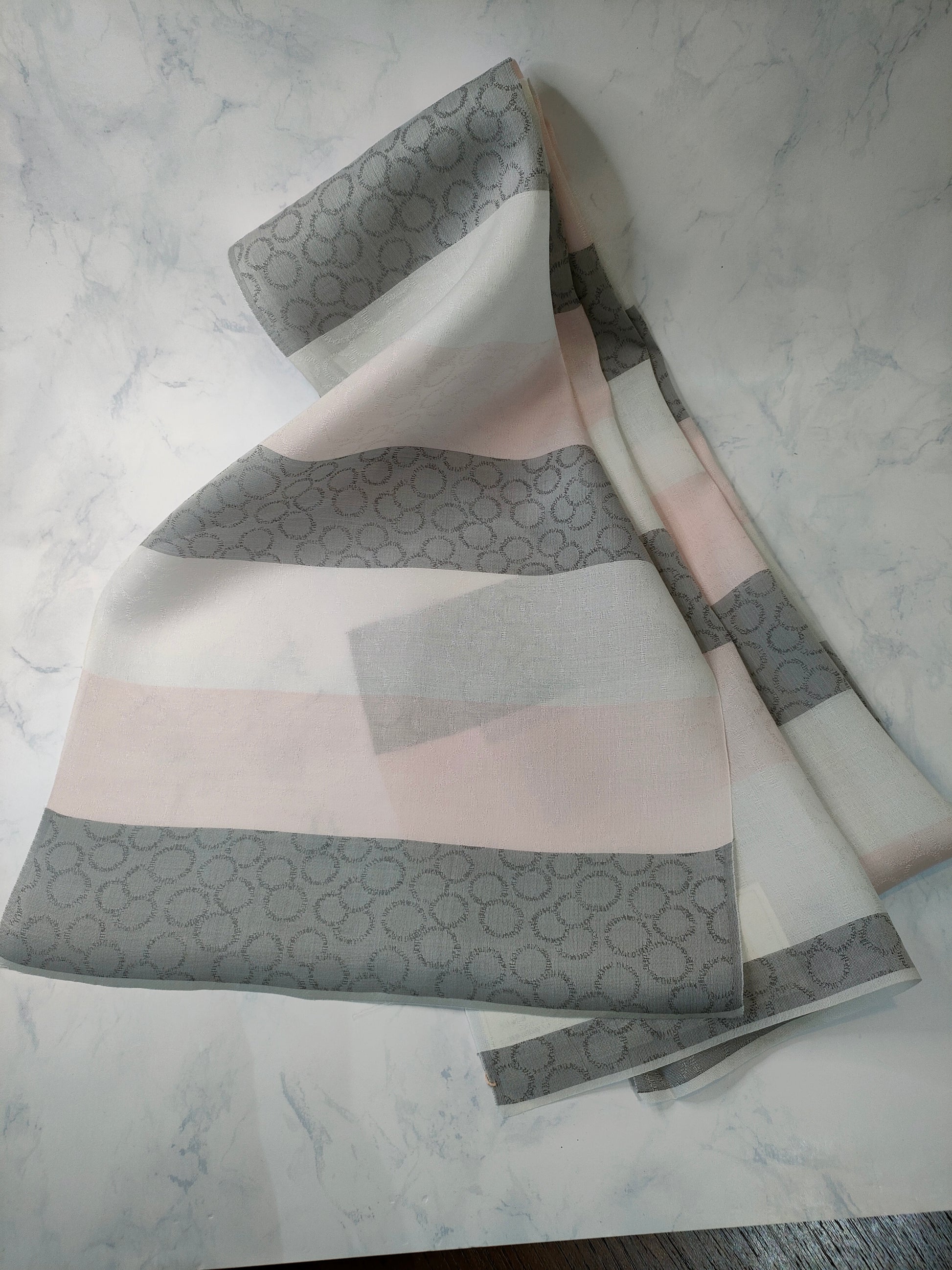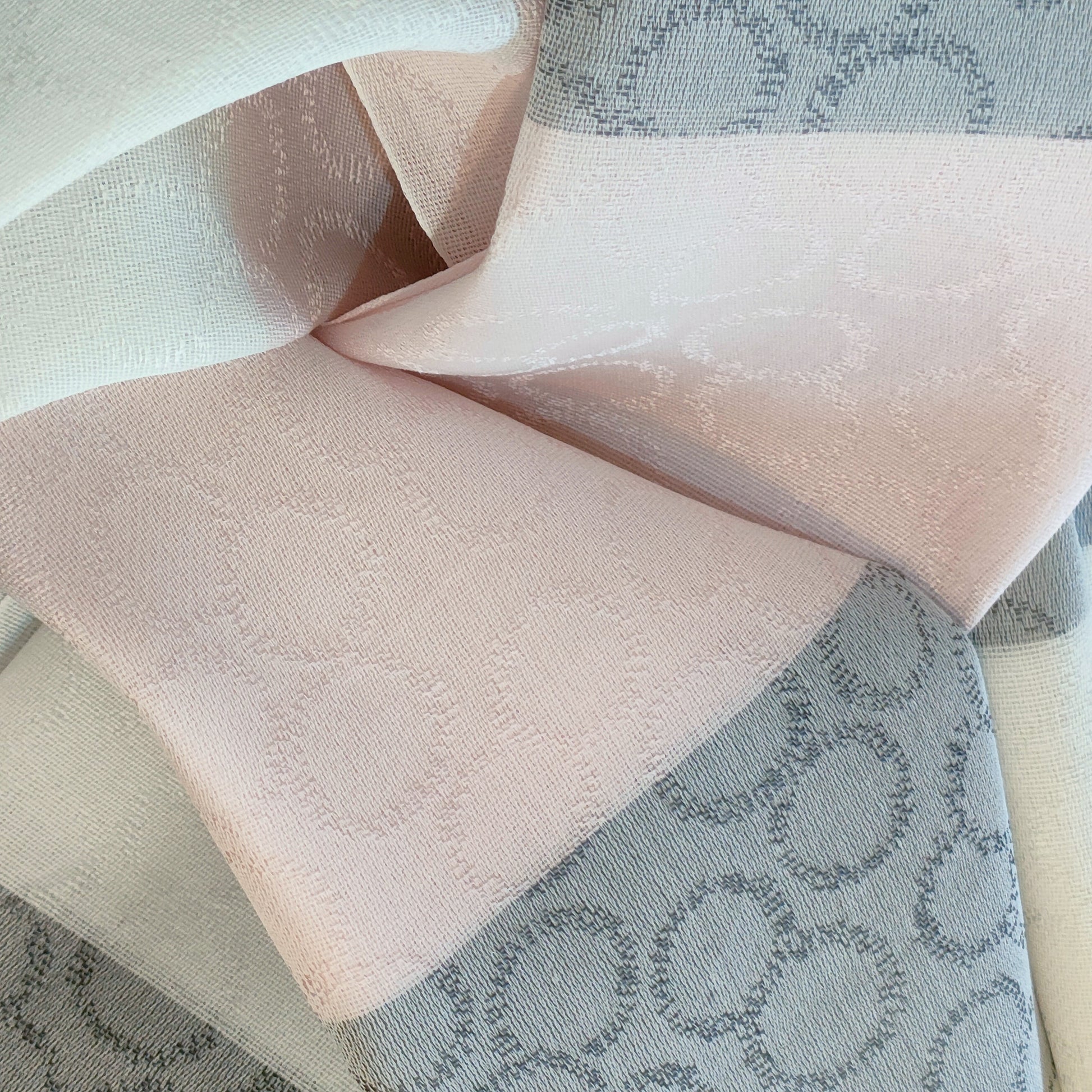 3色の緯糸(よこいと)を織り分けてストライプに。