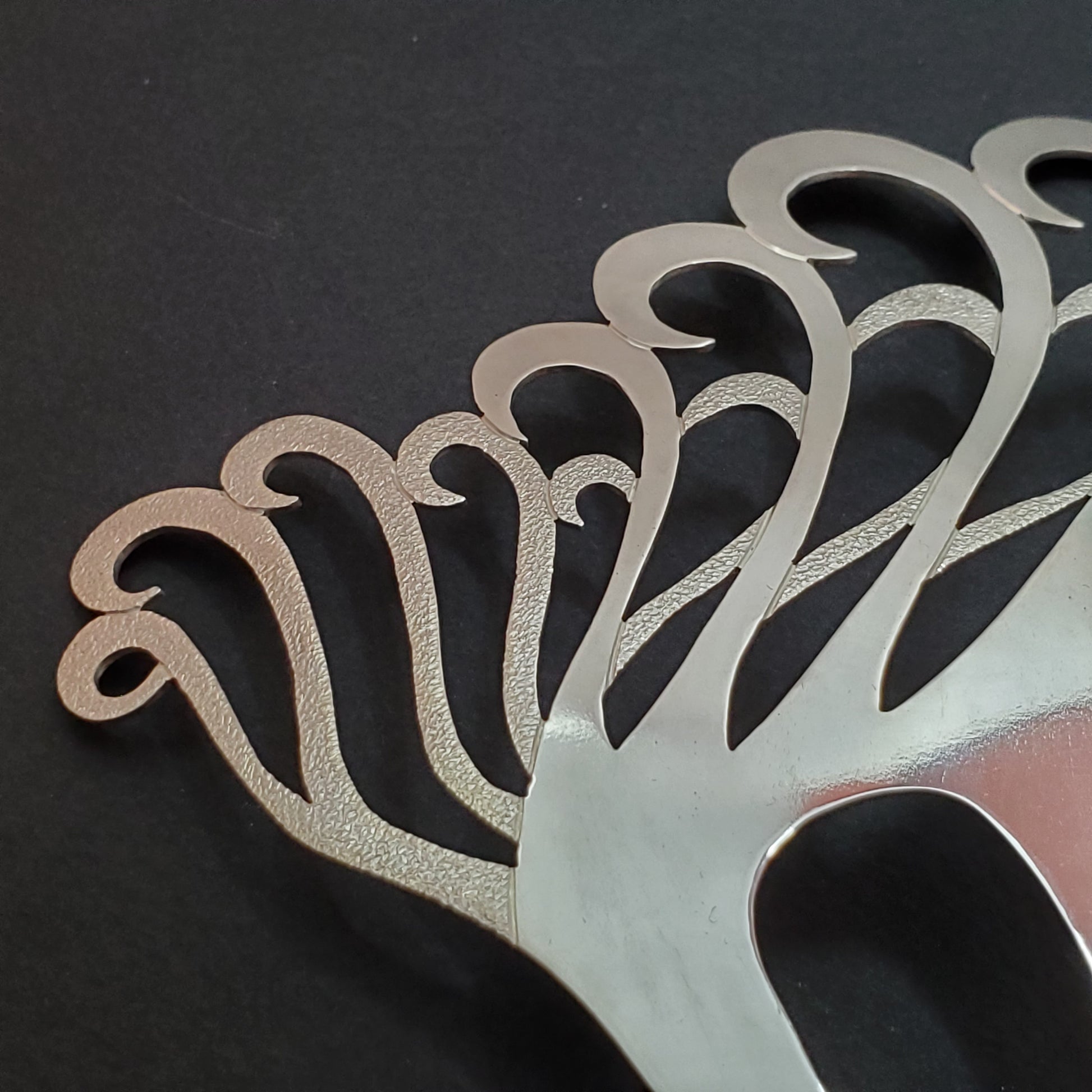 直径約6,5㎝の三日月の中に、藤の花のデザインを透かしています。