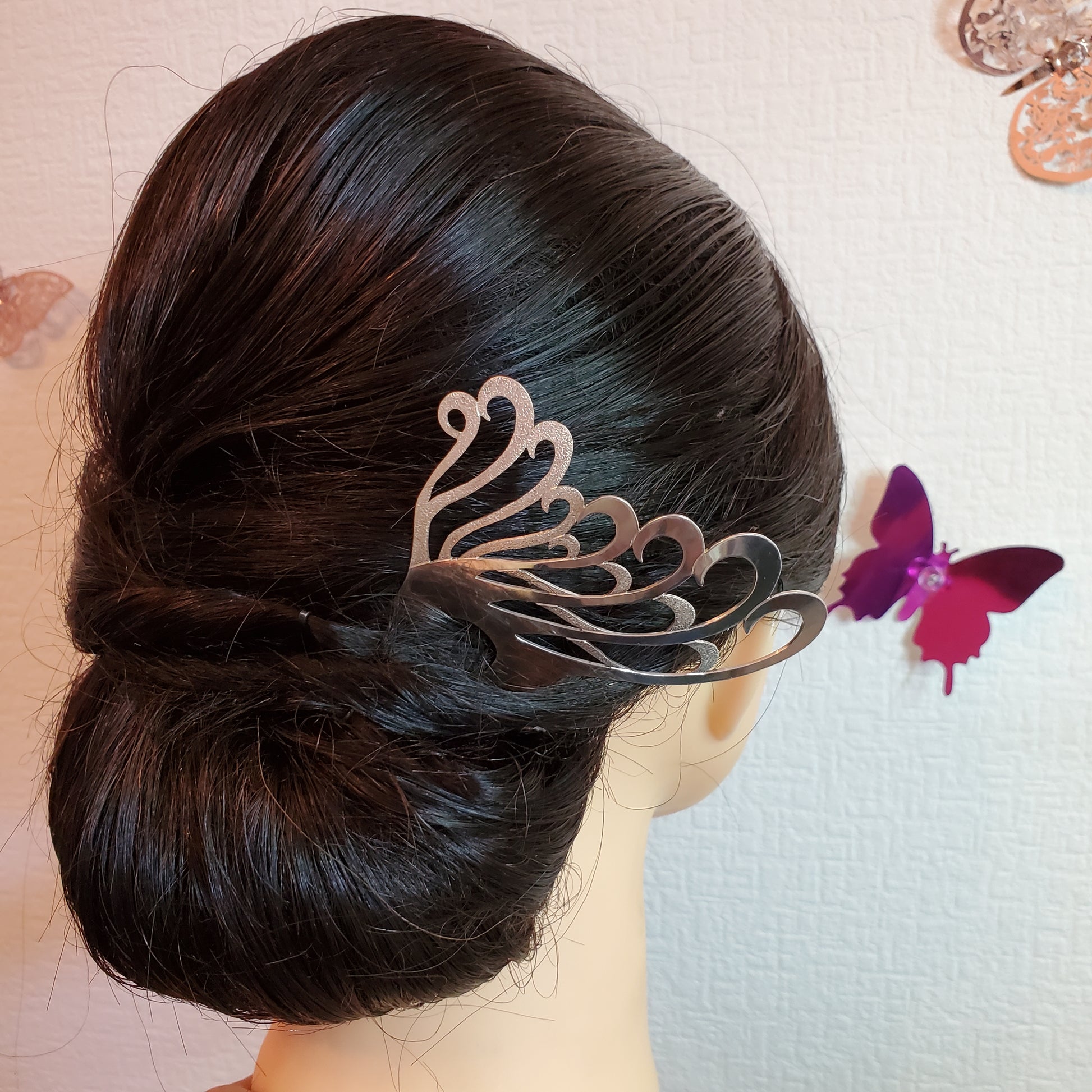 ☆あくまでも髪型が完成した後に、最後の【飾り】として、髪に挿してください。髪色と同じ10㎝~20㎝の糸でかんざしとヘアーピンをつないで、髪から抜け落ちるのを防いでください。